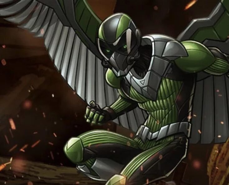 Мой противник представлял из себя худощавого мужчину в зеленоватом костюме, к которому прикреплялись железные крылья. Лицо его закрывалось шлемом, почти как у пилотов истребителей. Только своим видом реально напоминал морду стервятника, в чем я был согласен с тем мужиком, которого хотели схватить вместо меня.