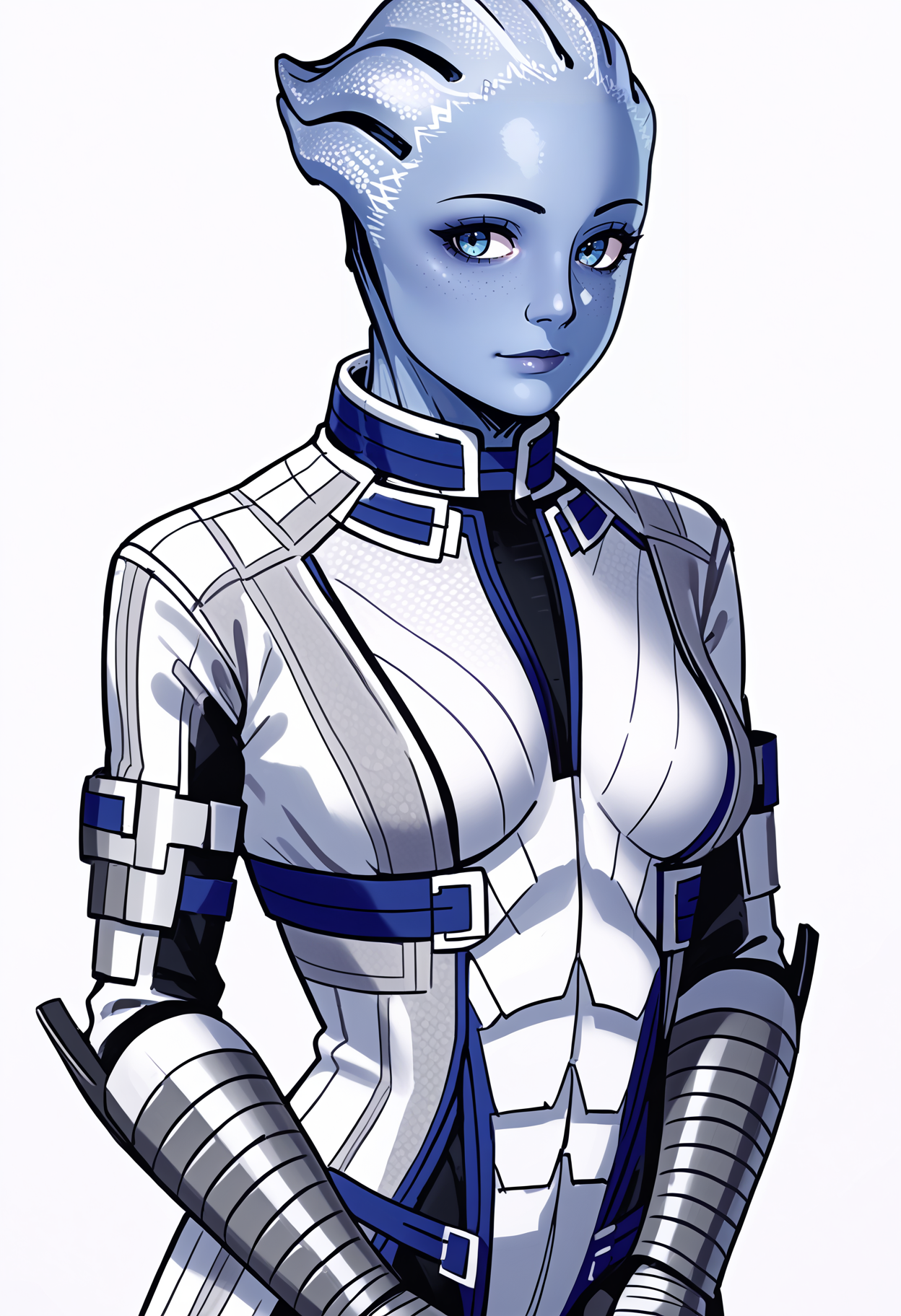 Во-вторых, слева от неё стояла совсем ещё молодая азарийская девушка приятной наружности, по зажатой позе легко читается её совсем ещё юный характер. Лиара Т’Сони.