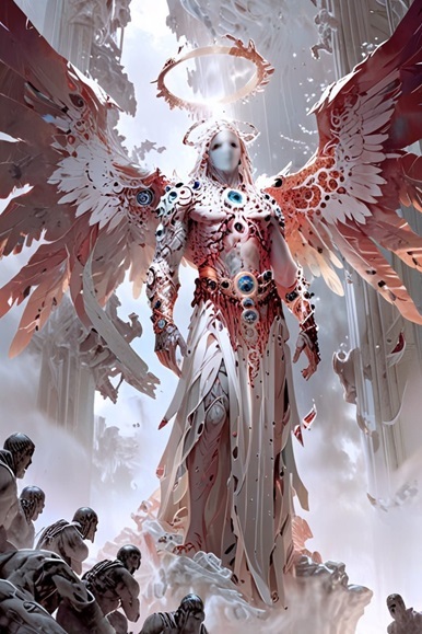 Нечто напоминающее библейского ангела, несколько чуждое существо с темными пустыми глазами на лице маске, с двумя золотыми нимбами над головой выглядит почти родным. Мы призывали в Новом Мире что-то подобное, в целом достаточно похожее. Но тут мощность совсем другого порядка, как пламя свечи против лесного пожара.