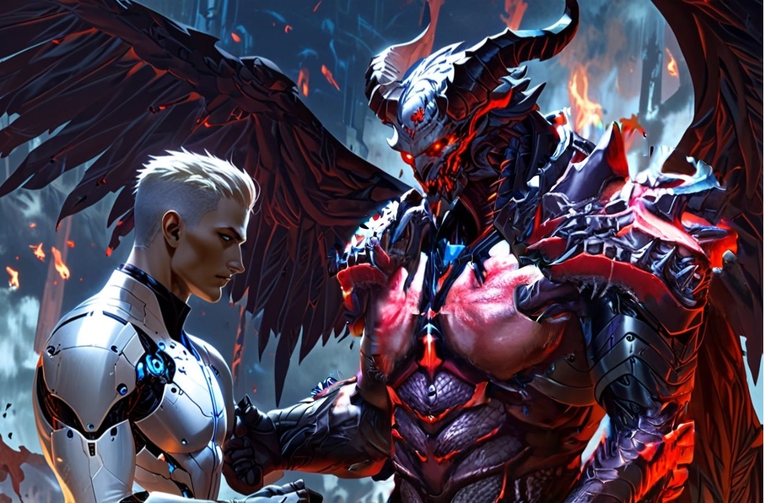 Поражают контрасты. Спокойно могут стоять рядом практически обычный человек в высокотехнологичном костюме, без всякой энергии… Хотя он киборг какой-то похоже, неважно. И буквально архидемон пышущий мощью, внутри которого крутиться сомн из миллионов душ (в точном числе не уверен) … И они ещё о чём-то договариваются.