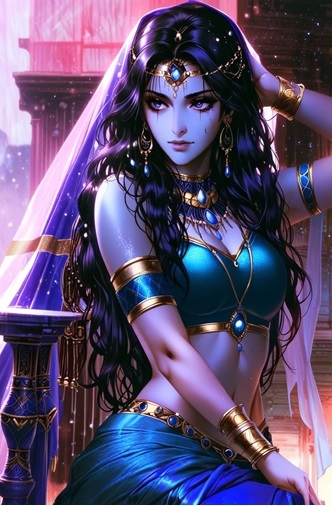 Есть тут и не крупные существа, некоторых из которых можно и на ладонь уместить. Но больше всего гуманоидов примерно нормального размера от метра до трёх, самых разных форм и цветов, от божественной красоты… Видимо синекожих индийских богинь? Которые собрались группой.
