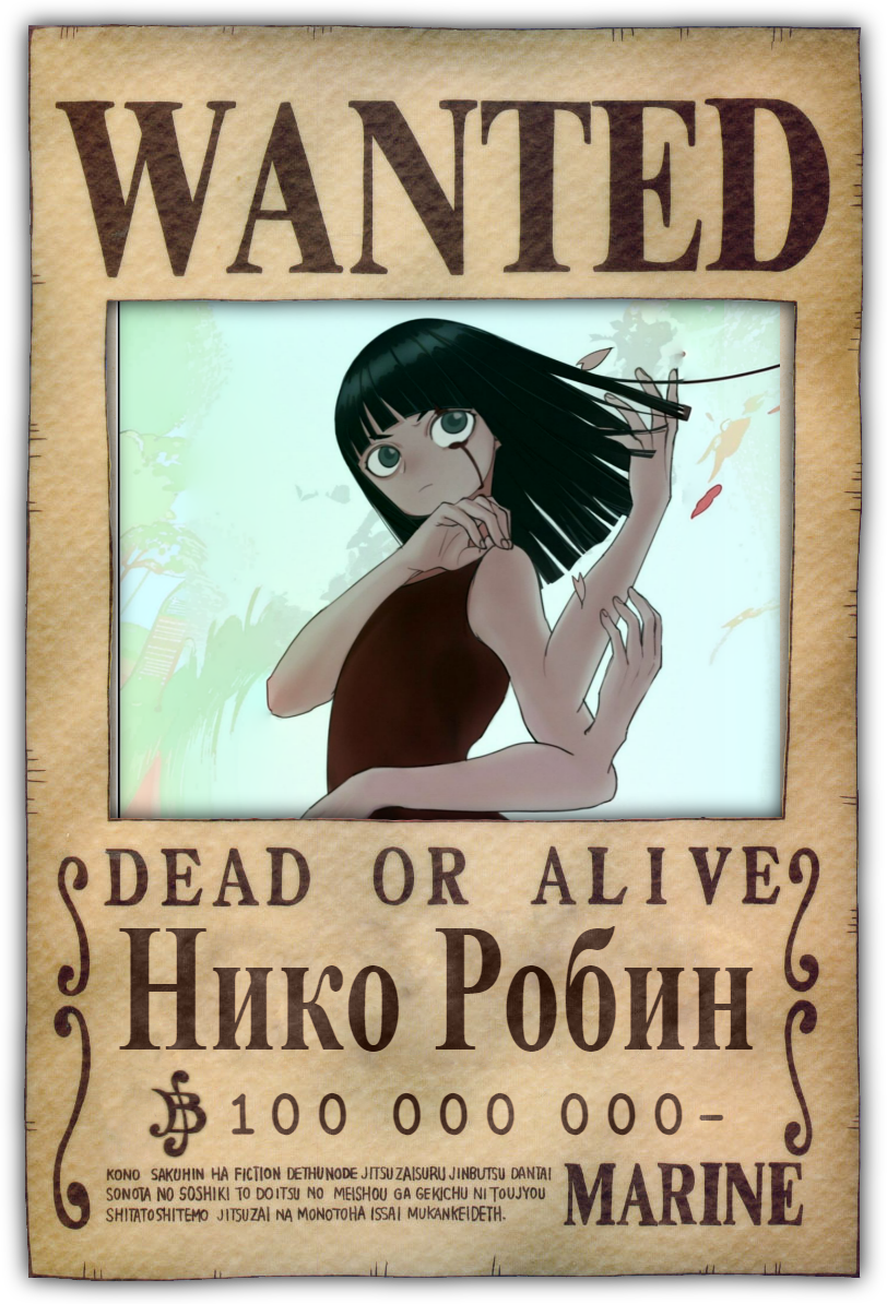 Живым: «Дьявольское Дитя» Нико Робин. 100 000 000 белли. Член команды «Кровавой Розы»