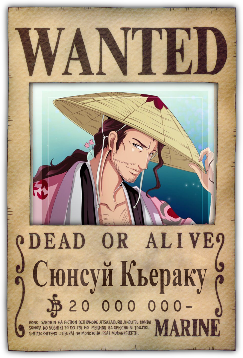 Живым или мертвым: Кьераку Сюнсуй. 20 000 000 белли. Член команды «Кровавой Розы»