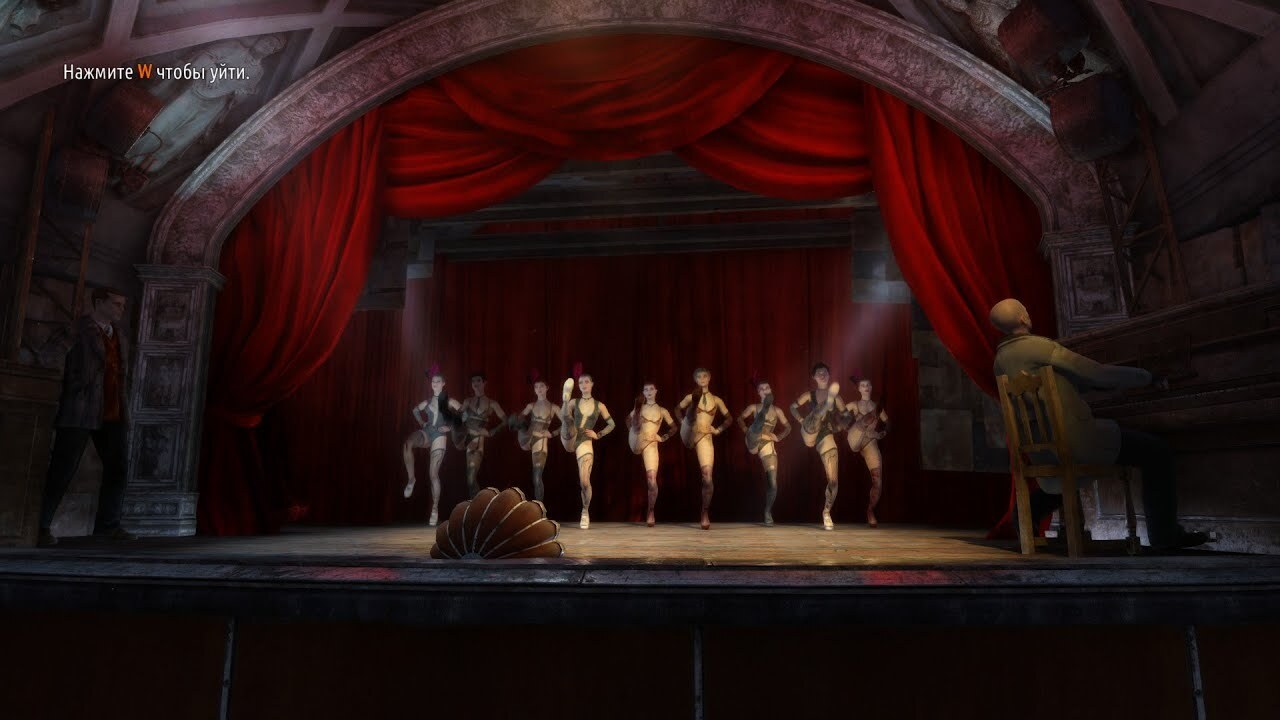 За ушедшими в стороны бардовым пологом пустились в пляс полуголые девушки, чьи тела прикрывали лишь вариации нижнего белья, если судить по количеству прикрытых мест.