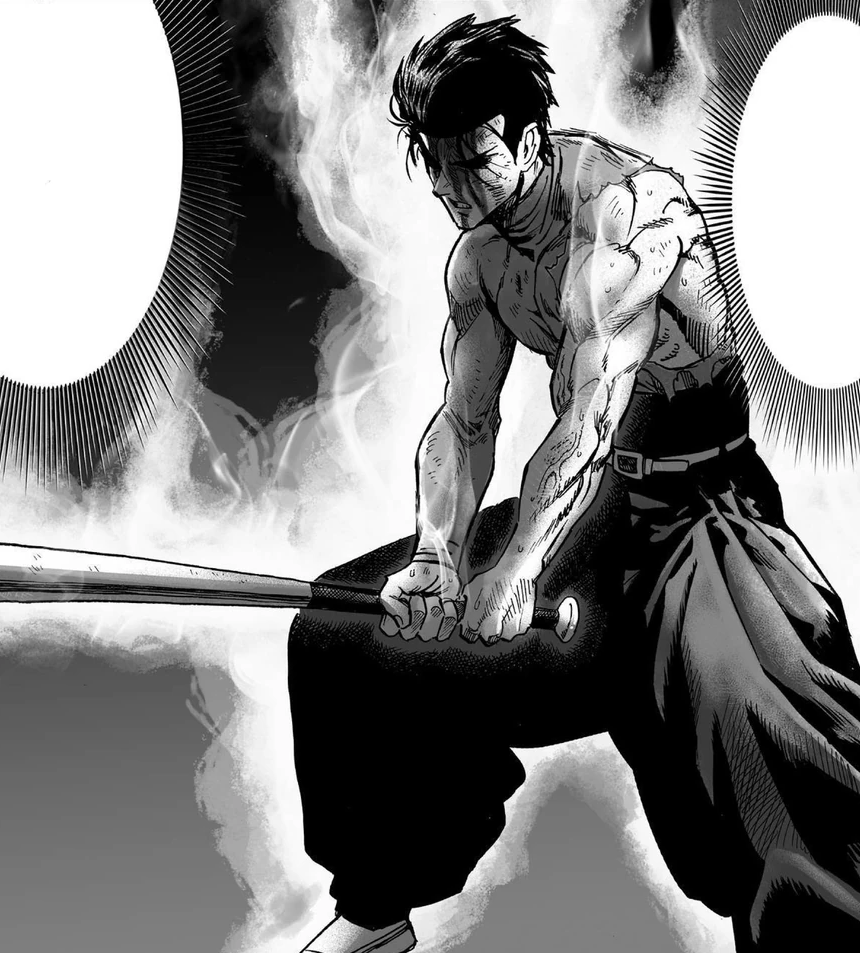 Несмотря на то, что я совсем недавно сломал ему пару костей, герой вышел на тот уровень силы, когда я мог противостоять ему, не сдерживая свою силу, исключая из арсенала лишь убийственные техники Кулака Вихря. Об этом я узнал в тот момент, когда Бита, удары которого ранее отклонялись мной не глядя, вдруг пробил мою пассивную защиту и впечатал мне свою биту в плечо.