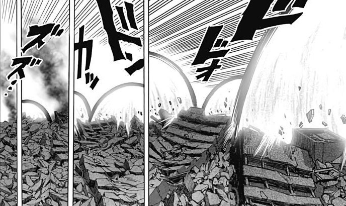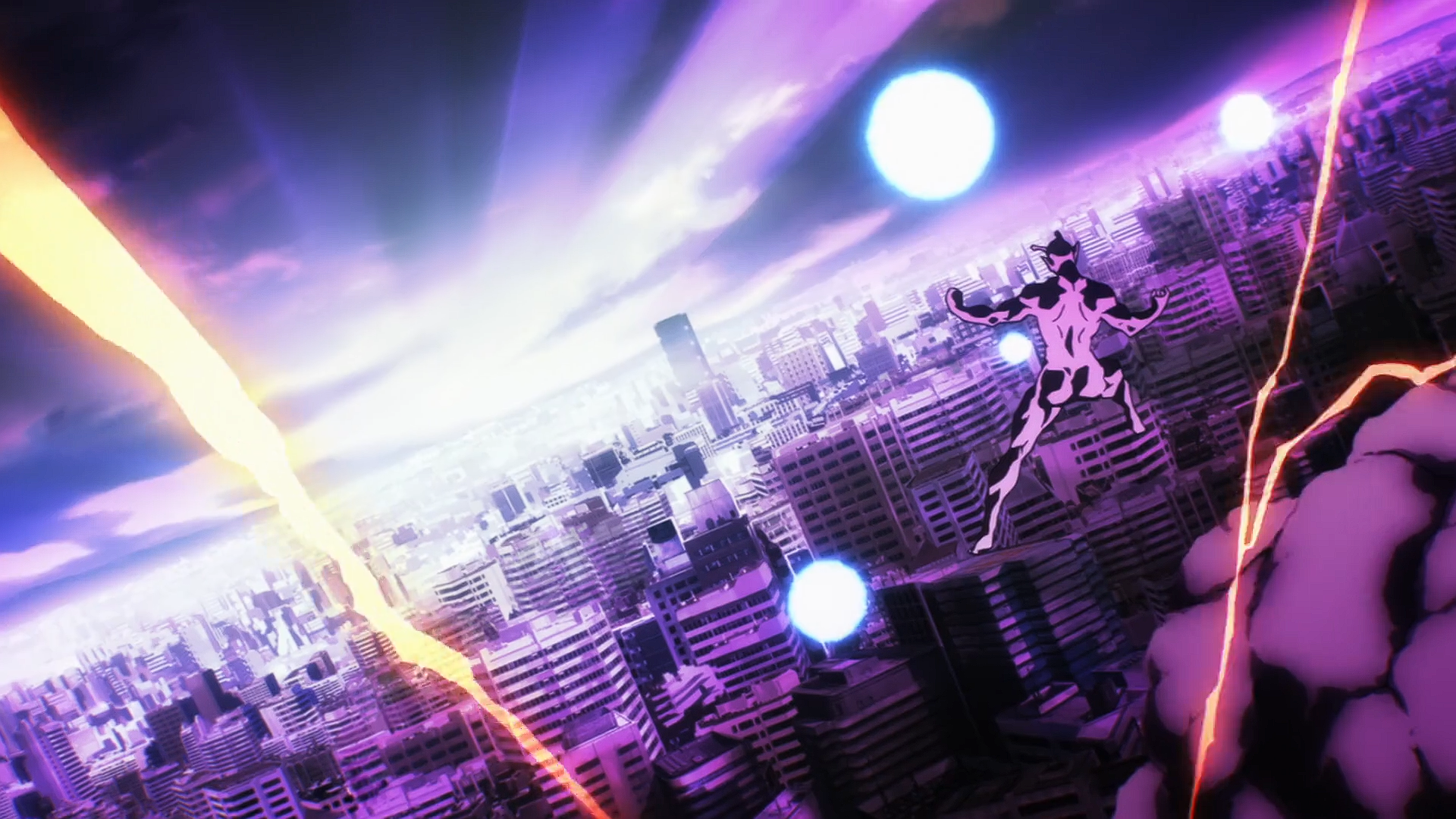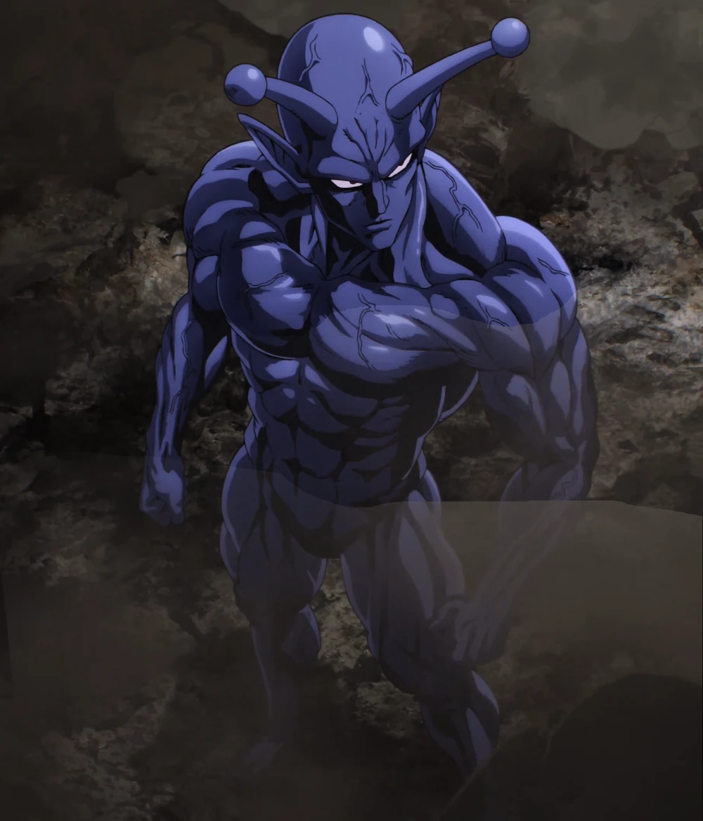 Судя по тому, что я видел, уже находясь неподалёку от нужного места, чудовище обладало каким-то видом дальнобойных атак. Эта часть города, была разрушена почти полностью. Небольшие кратеры, вокруг которых были полностью снесены и разрушены дома и прочая инфраструктура, явно свидетельствовали о крайне буйном характере монстра. Высадив Фубуки у пока ещё целой штаб-квартиры Ассоциации, чтобы она с остальными героями включилась в эвакуацию мирных жителей, сам я вновь устремился вперёд и… уже вскоре увидел его — голого фиолетового гуманоида, с двумя округлыми антеннами на лысой голове. Его размеры были вполне себе человеческими, в макушке он не превышал пары метров. Но вот разрушительная мощь, которую он демонстрировал, действительно внушала.