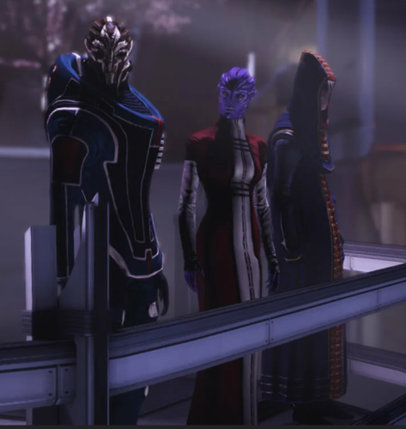 Вскоре мы оказались на станции. Двери челнока открылись, и, не успел я пройти и пары шагов, как ко мне подошёл турианец. Эти существа напоминают рептилий. У них внешний экзоскелет, похожий на панцирь жука, но при этом они сильно напоминают людей. В основном турианцы промышляют охраной или войной, чтят честь и являются опасными противниками. Я убил сотни, запомнив больше трети. Это лучший показатель среди всех рас Цитадели.