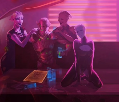 — Добро пожаловать в Загробную жизнь! Нравится? — турианец указал на танцующую азари. Помимо голубой кожи, их от нас отличает продолжительность жизни в тысячу лет, способность рожать только девочек своей расы и склонность к продажности тела. — Ладно-ладно, мелкая сошка, понял, огорчён, но принял.