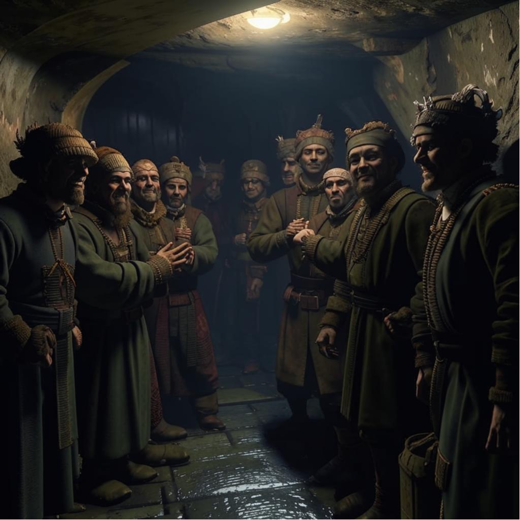 Лестница вниз, ведущая в подвал, выглядела так, словно её позаимствовали из фильма ужасов. Каменные ступени, покрытые трещинами и мхом, уходили в густую темноту, где свет едва дотягивался до углов. Тишина давила, она казалась ненормальной, неестественной. Даже скрип лестницы, доносящийся от шагов впереди, не приносил ни малейшего утешения. Каждый звук резал воздух, наполняя его напряжением. Даже я, бестелесный, ощущал, как сгустившаяся атмосфера этого места проникает внутрь, пробуждая неосознанный страх.
