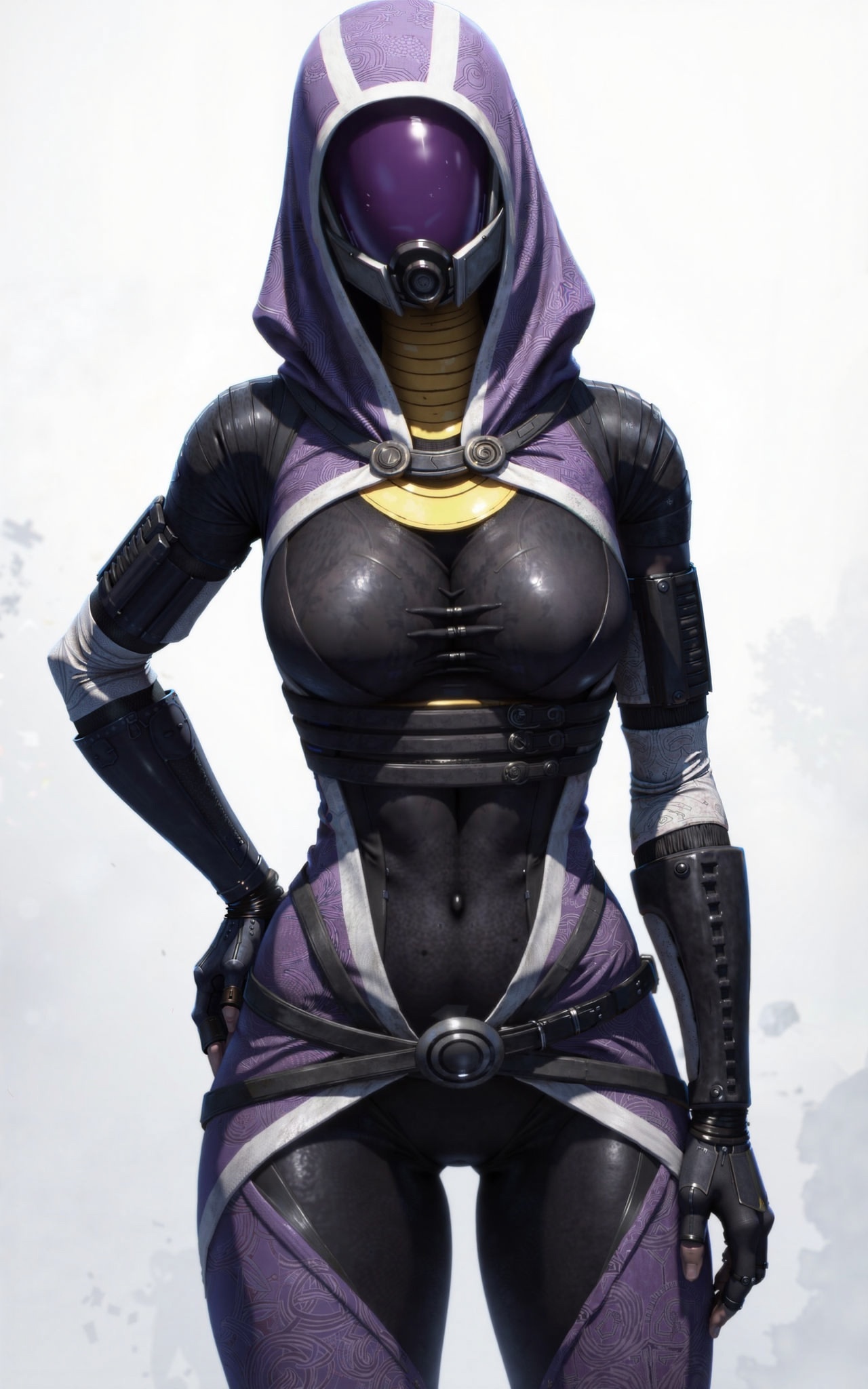 С другой стороны, где располагалось ещё одно помещение, показалась обеспокоенная за состояние матери Лиара Т’Сони — высокая и стройная молодая азари, с синеватой кожей. Глаза мягкого бирюзового света, черты лица изысканны и утончённы. В облегающем белом костюме, подчёркивающем её грациозность.