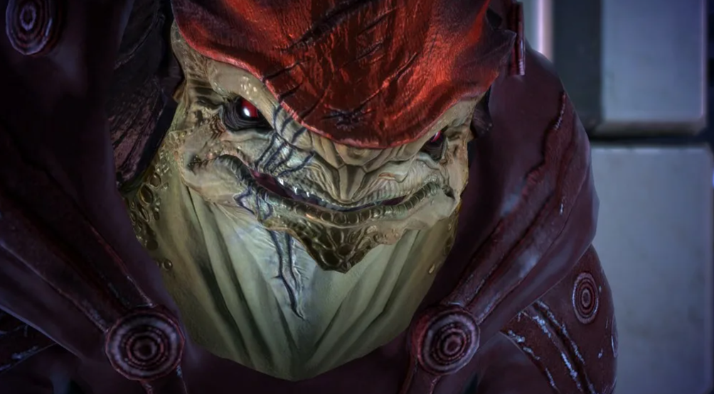 Саларианец быстро вышел из себя, что стало для нас большим сюрпризом. Он носил робу, но будь на нем штаны, можно было бы скаламбурить. Хотя, если подумать, его реакция вполне ожидаема. Валерн до безумия боится мести кроганов за генофаг. Именно его раса создала отвратительный вирус, распространила его и обрекла целый вид на медленное вымирание. Если кроганы излечатся, что они сделают в первую очередь? Начнут истреблять саларианцев.