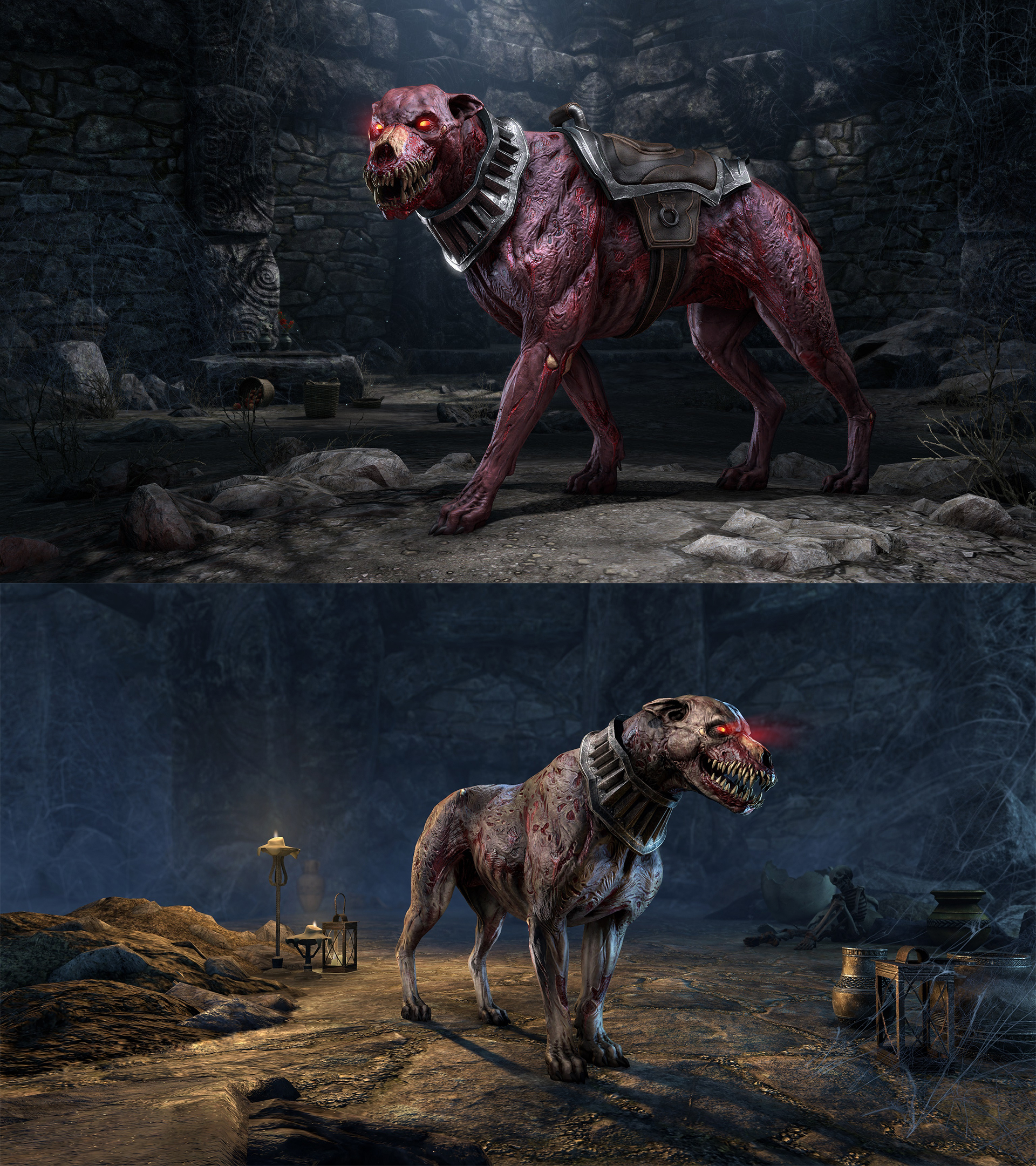 Эти твари называются «гончими смерти», внешне они напоминают огромную собаку, у них большие, горящие огнём глаза, красная или чёрная кожа, пасть усеяна несколькими рядами огромных и острых клыков, а под кожей чётко проступают мышцы. Гончие смерти являются ручными псами вампиров клана Волкихар, которых заразили вампиризмом, превратив в мёртвое подобие кровожадного монстра. Уровень у гончих незначительный, но как боевые питомцы они отлично подходят для кровососов.
