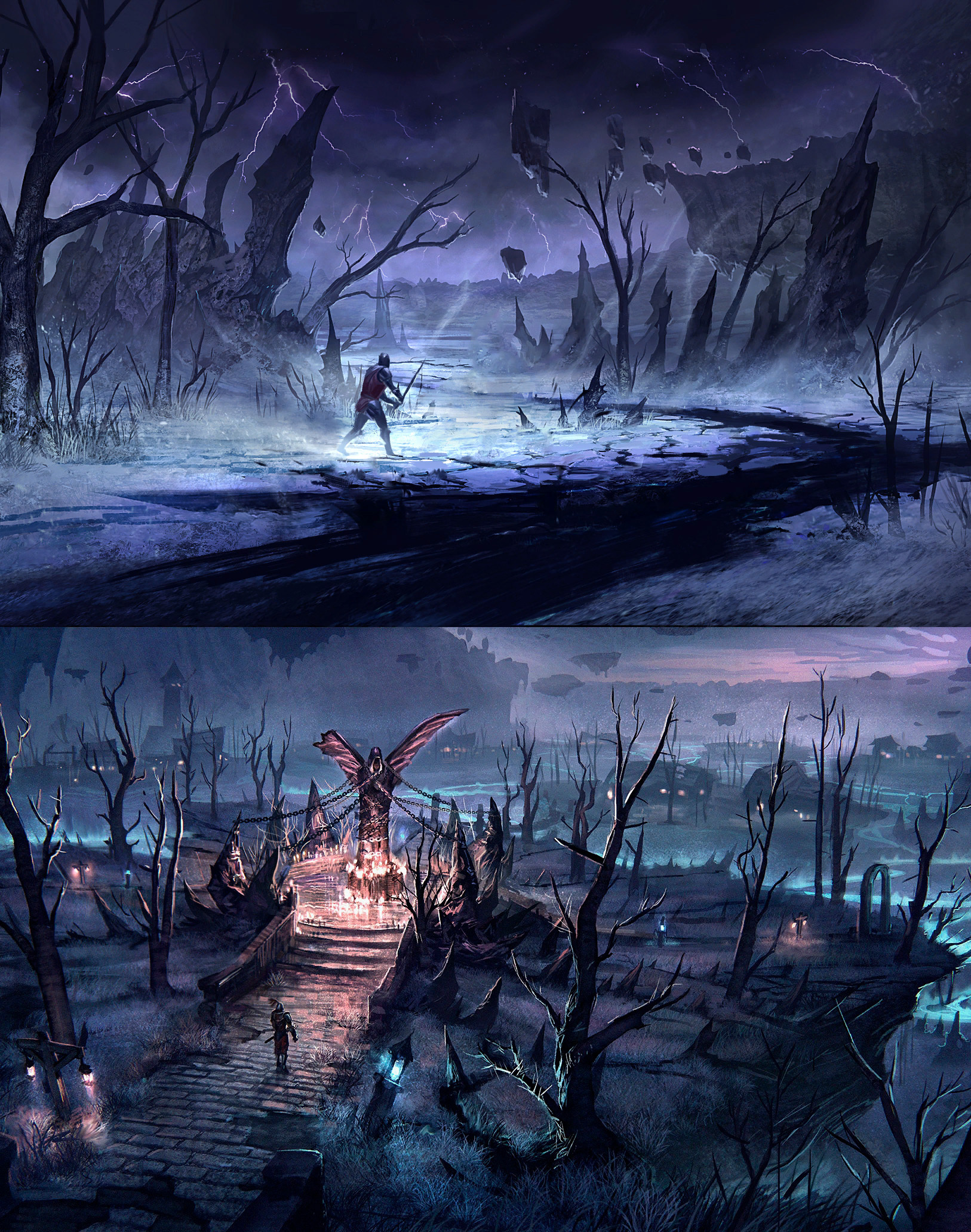 План Лорда Порабощения представляет собой безжизненную пустошь, имеющую отдаленное напоминание о Тамриэле, по подобию которого изменил свой план Молаг Бал. В Хладной Гавани часты снегопады, а небо всегда затянуто черными облаками, деревья и растительность полностью иссохшие, да и в целом это место очень похоже на Каирн Душ.
