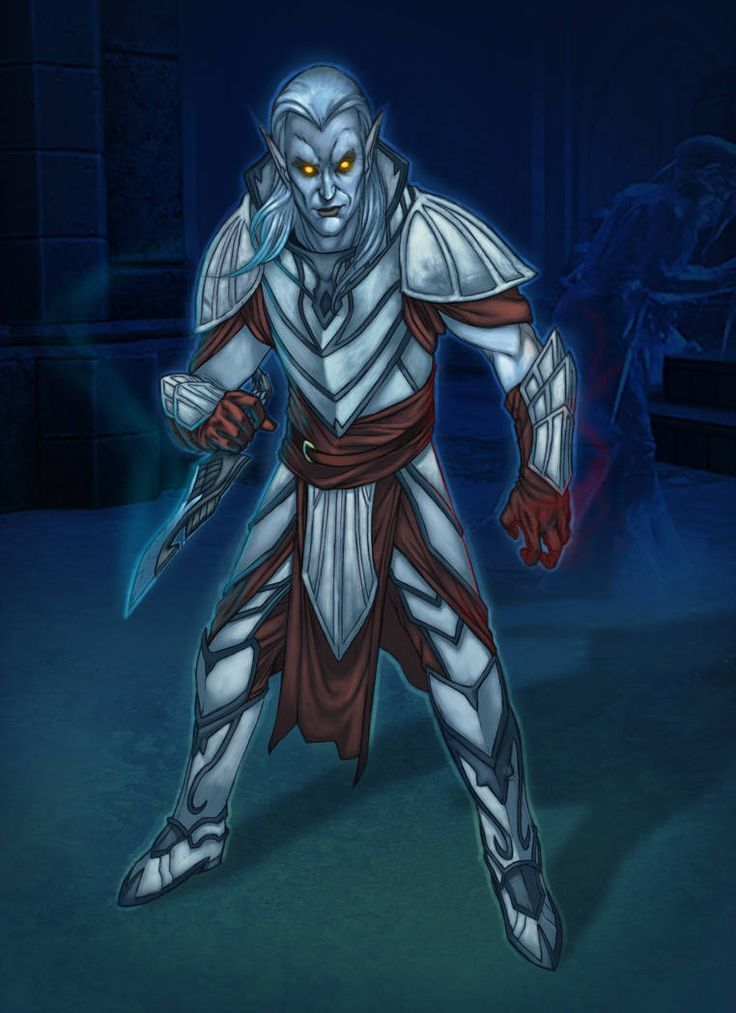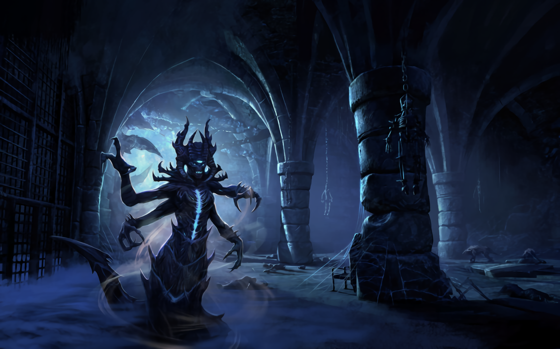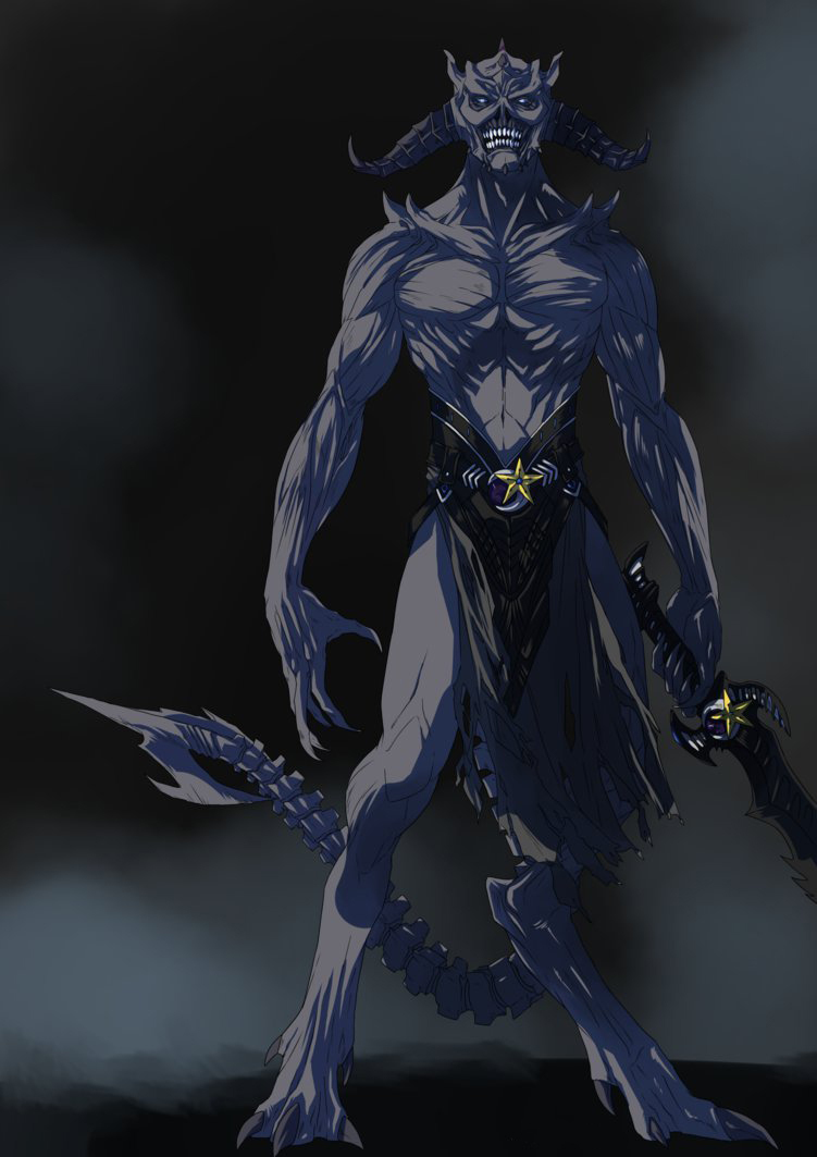 — Я хочу не мести. Я хочу твоего подчинения. — сказал полностью материализовавшийся Молаг Бал, выглядящий как здоровый рогатый демон с кинжальным ртом. В его руках появились особые цепи холодного железа, которыми последователи Бала сковывают пленников. Цепи выкачивают из души плененного силу, годы жизни и помутняя их рассудок. Они создаются с помощью концепции Молага Бала «подчинение», что предназначенная подчинять, и концепции «смерть», дающая обширные способности некромантии и усиливая их.