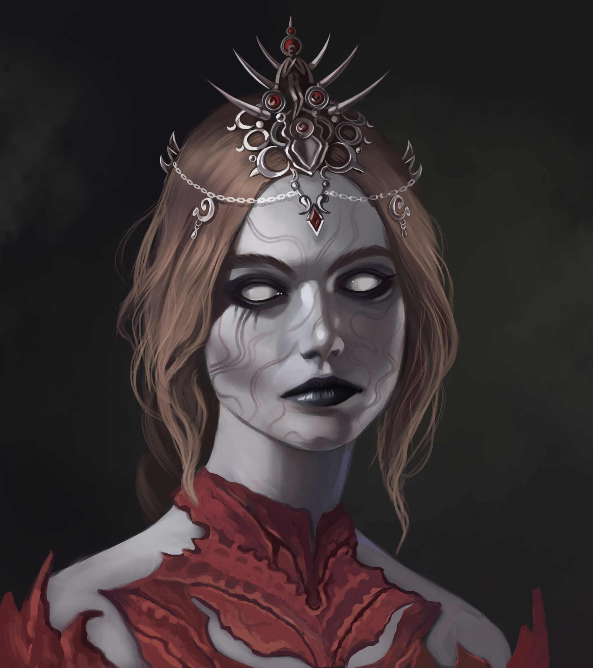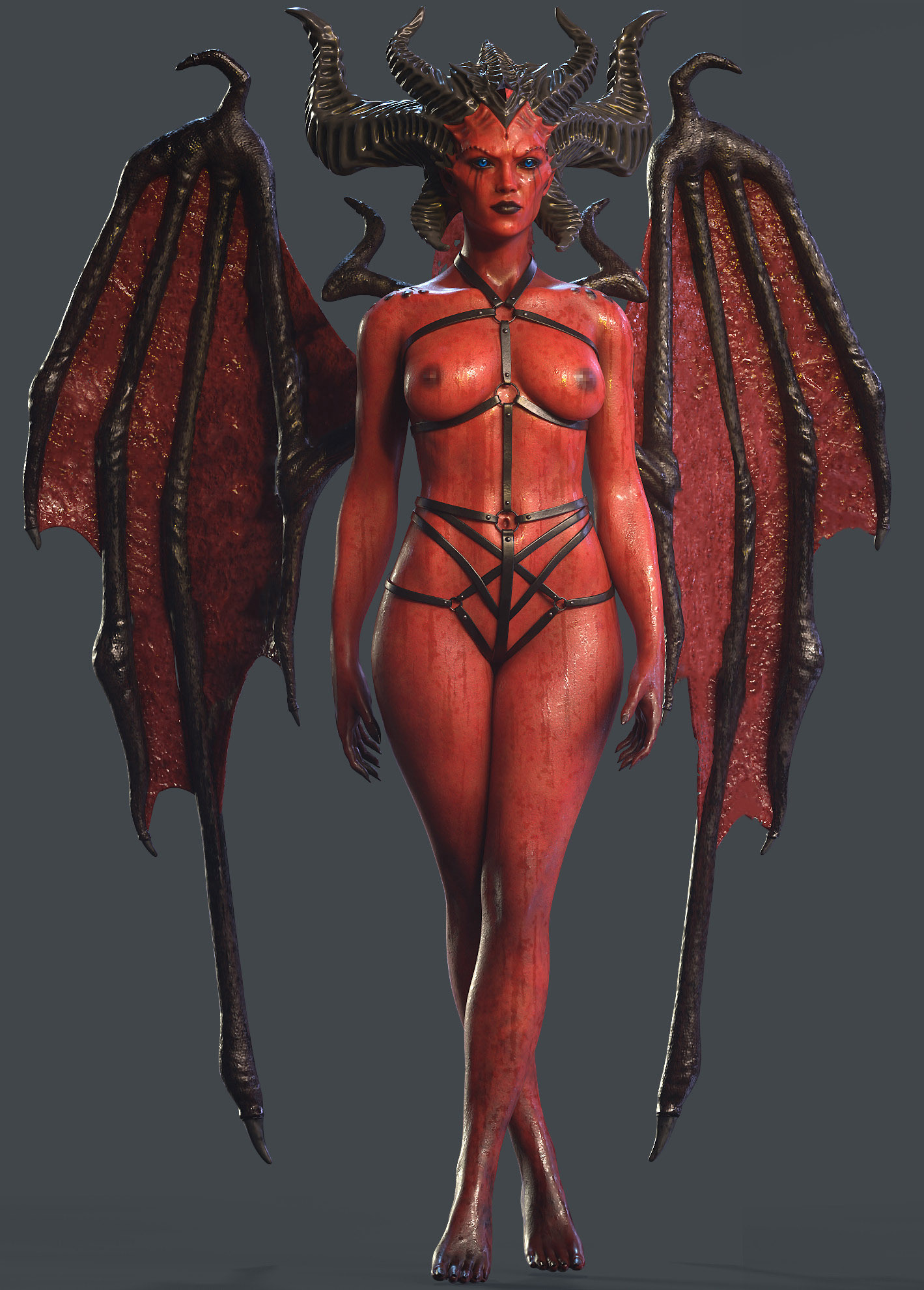 Когда ритуал подошел к концу, кровь начала стремительно покидать поры новой оболочки Потемы, затвердевая и закручиваясь вокруг тела, создавая подобие кокона, парящего в воздухе, а когда он раскрылся, на свет явилась обнаженная краснокожая дьяволица, переполненная демонической силой.