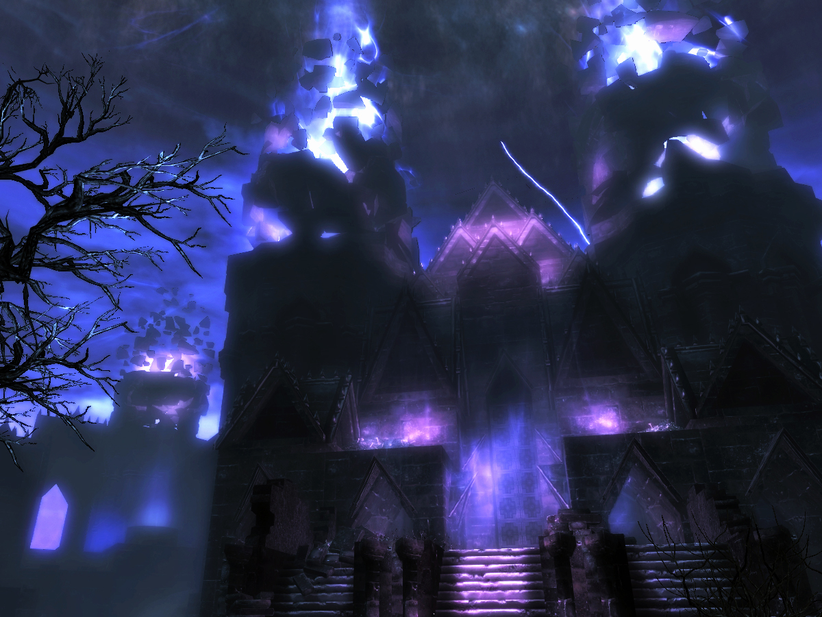 Телепортировавшись к пространственной метке Карлии и Сераны, я оказался во внутреннем дворе замка Волкихар, где перед глазами предстал грустный интерьер: мёртвые деревья, увядшие цветы и сломанные лунные часы.