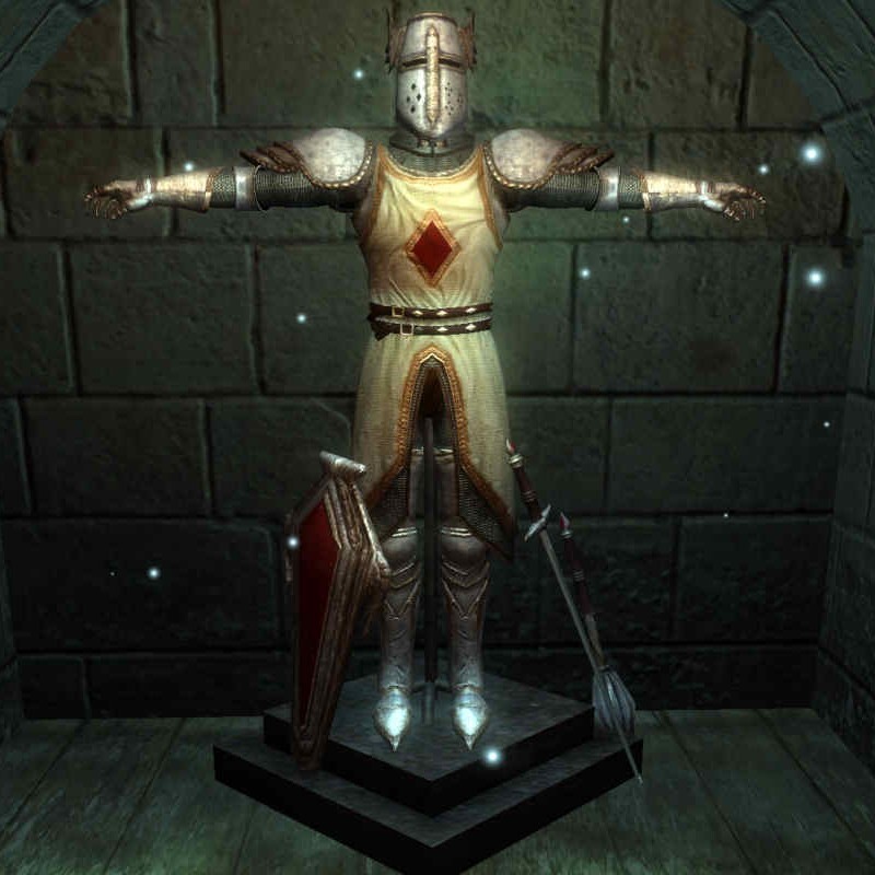 В итоге я получил набор тяжелой серебристой брони паладина, большой щит, одноручную булаву и длинный меч. Всё снаряжение крестоносца сделано из того материала, что и броня аврорианцев — даэдрического металла, что создается путем единения металла с креацией Обливиона. Однако в отличие того же темного металла, что используют дреморы, аврорианцы используют даэдрический металл, наполненный креацией плана их госпожи Меридии, то есть сконцентрированной энергией света, от чего металл приобретает серебристо-золотой оттенок и свойства этой энергии.