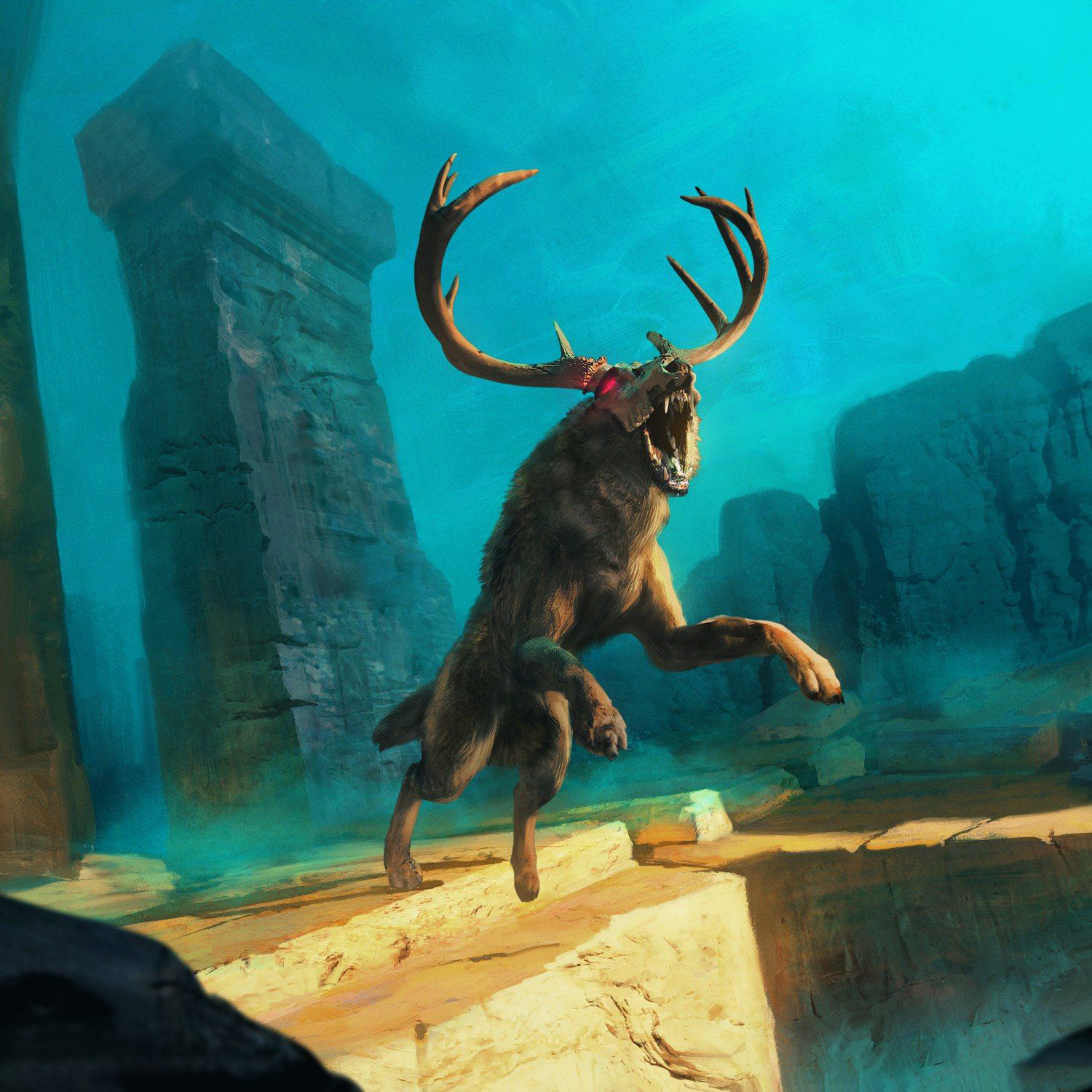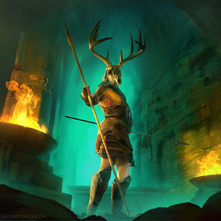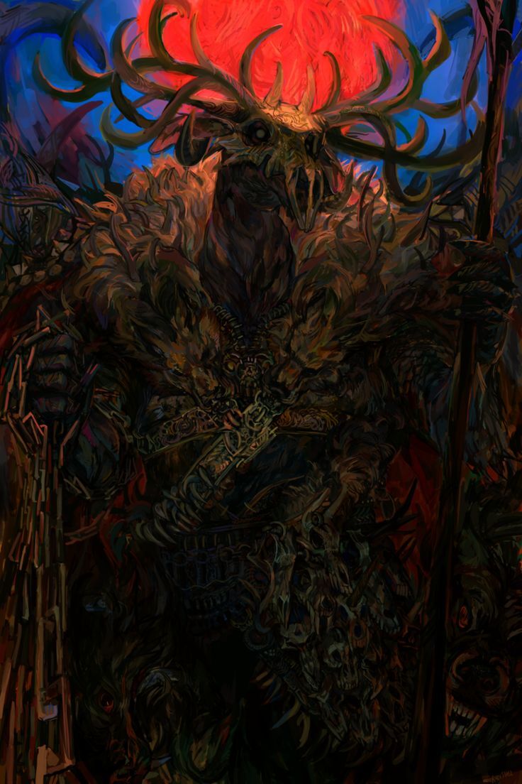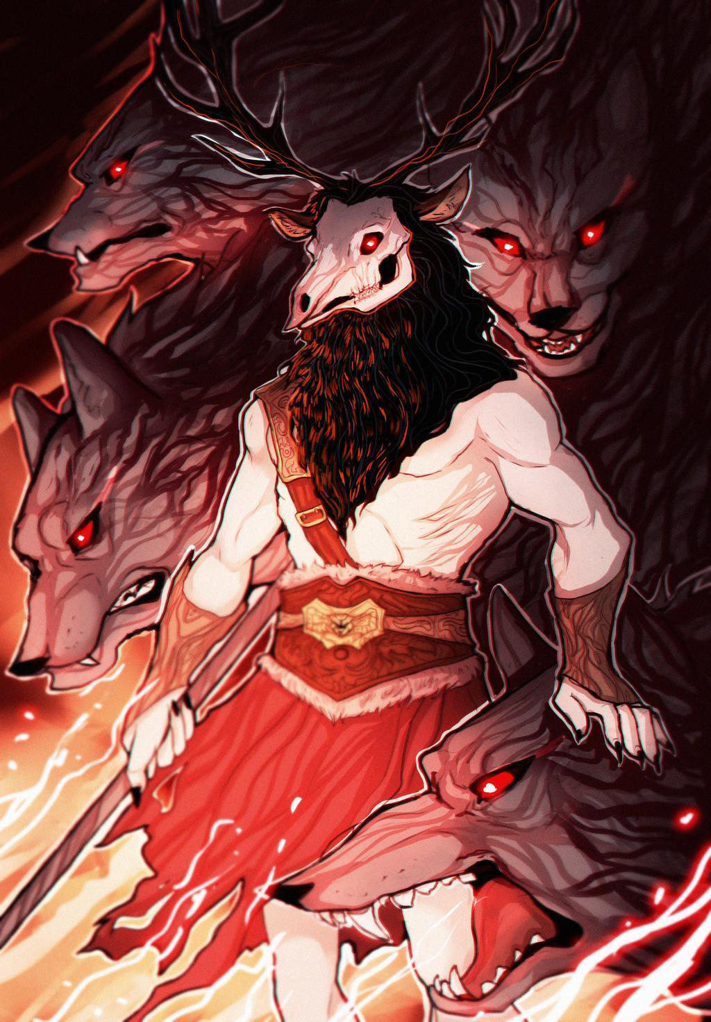 Так мы продолжили обмениваться ударами с нечеловеческой скоростью и силой в течение нескольких минут. После того как я отбросил охотника ударом ноги, он решил сменить тактику: принял облик своего звериного аспекта, трехметрового гигантского волка… с оленьими рогами. Подобное не удивительно, ведь концепция Хирсина — «зверь», что позволяет контролировать любых зверей, в том числе и их души. Став волком, Отец Охоты сразу прыгнул на меня с обнаженными клыками, чтобы загрызть.
