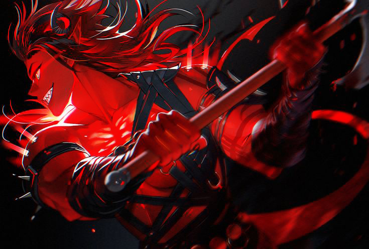 — За нашего повелителя! — вскрикнула Риэль, потроша войска Мерунеса Дагона топором, ускоряя свои удары с помощью реактивных потоков пламени из рук и ног.