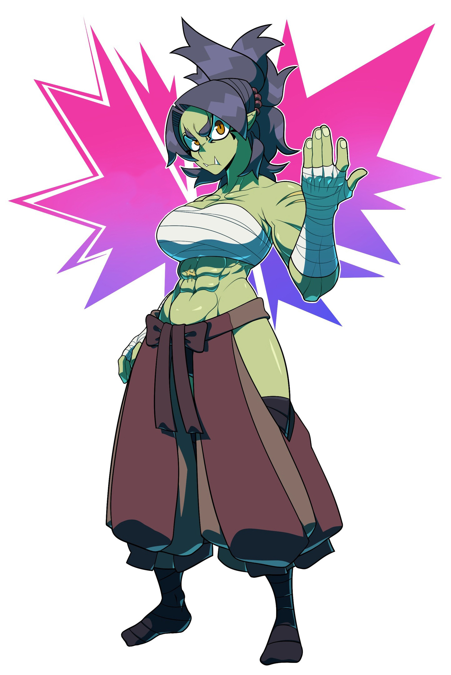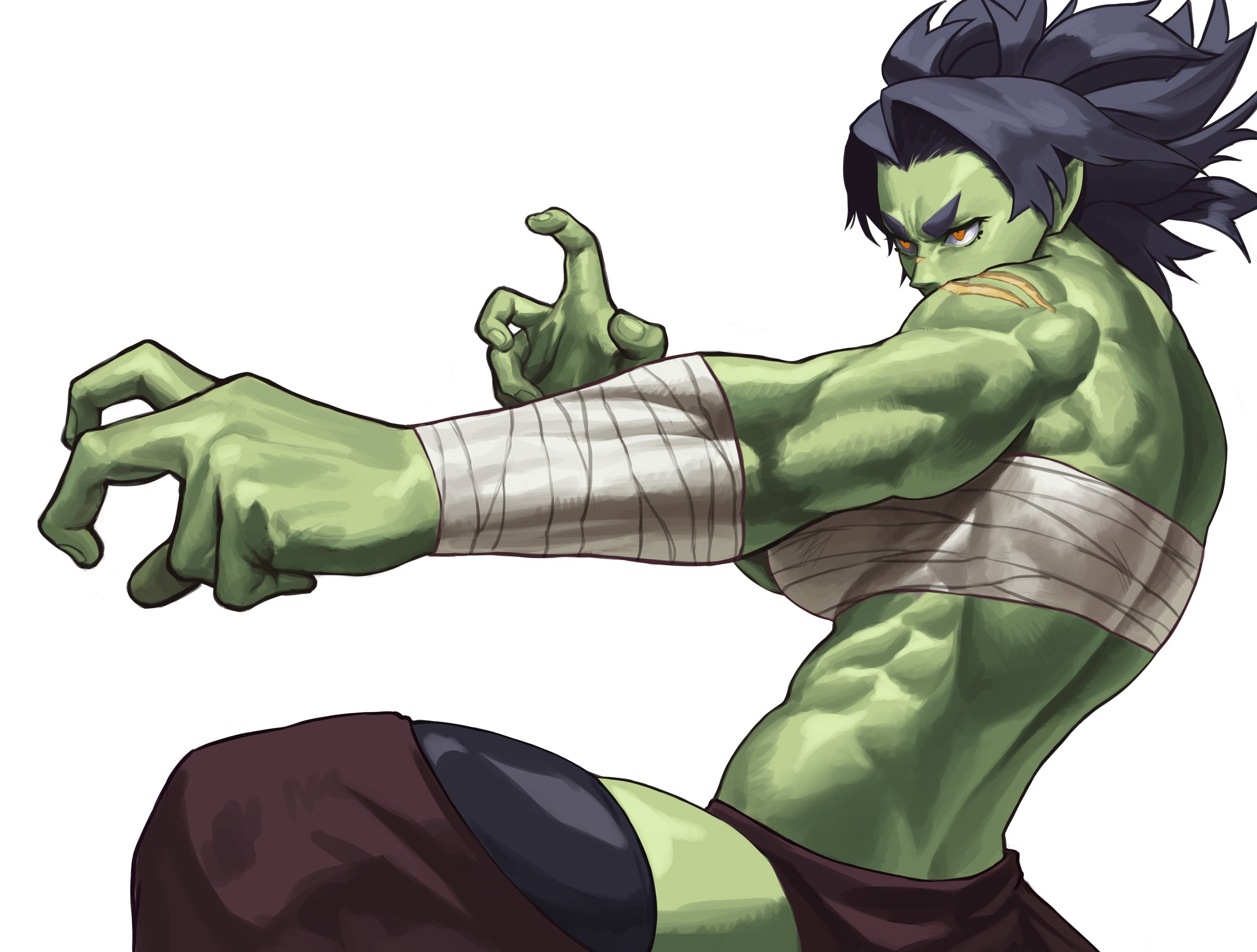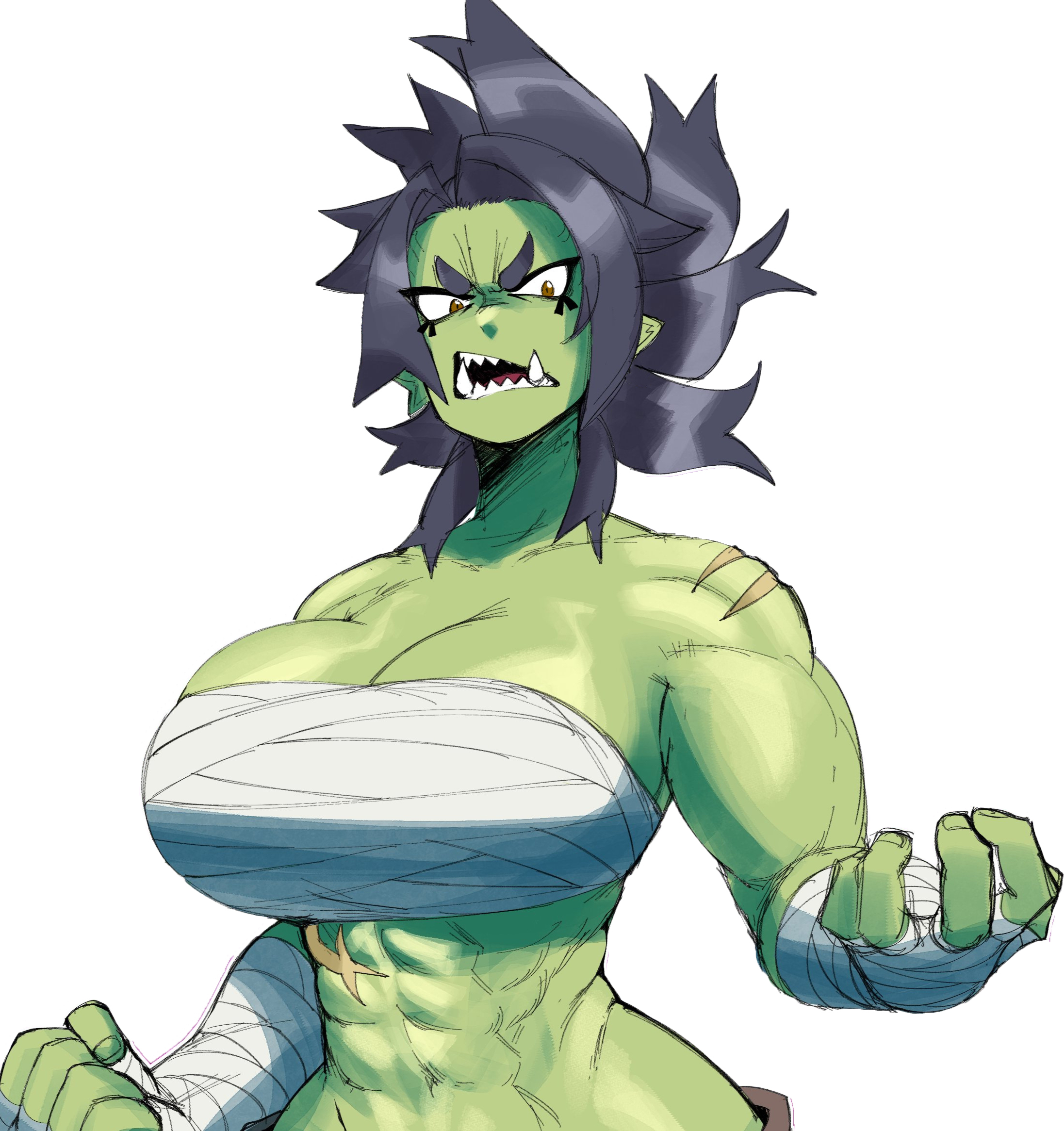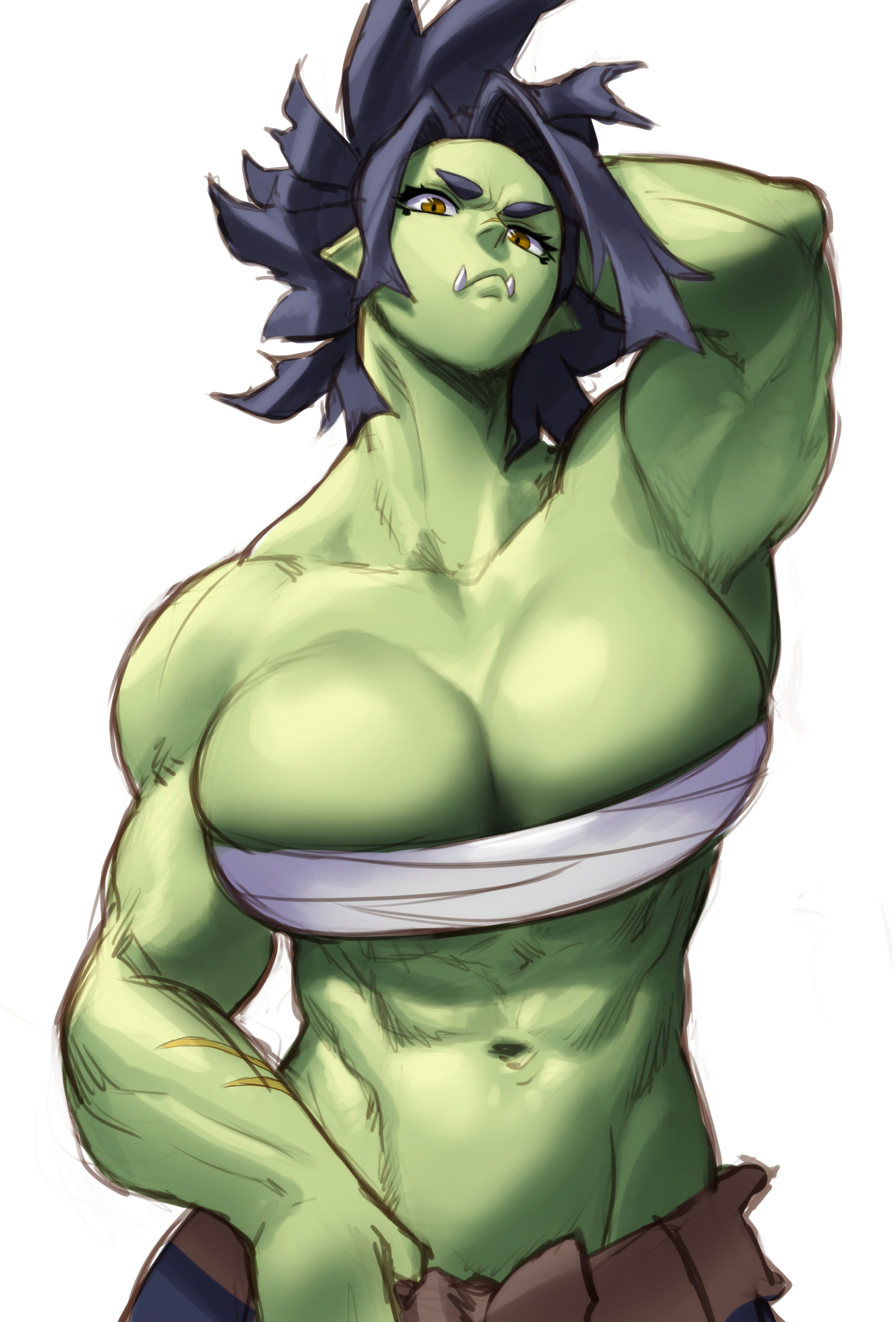 — Отец, я не понимаю, к чему это! Я орк! Носить такую одежду — значит неуважительно относиться к нашим традициям! — ответила мускулистая темноволосая орчиха. Она была одета в свободные штаны, с повязкой на груди и руках, открывающей много участков зеленой кожи. На орчихе были небольшие ссадины, ибо она недавно вернулась с охоты, да и старые шрамы имелись. Обычно орки предпочитают вместо одежды броню из металла, легкую кожаную одежду или повязки, что мало что скрывают… как у девушки. Ну, у орков довольно варварский стиль боя, так что и обмундирования под стать.