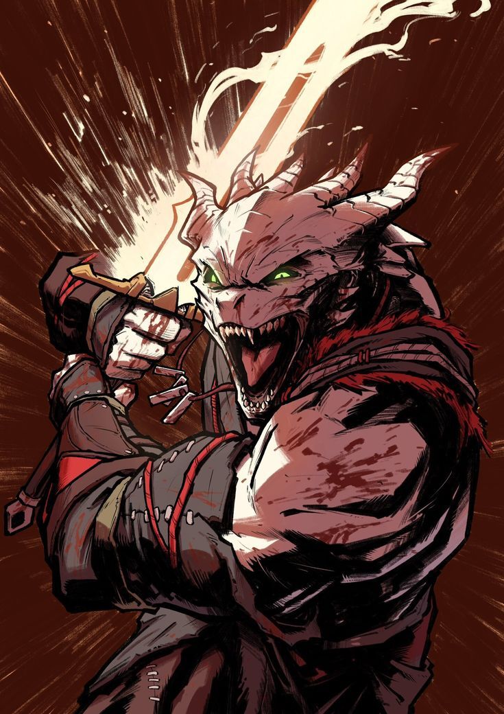 Дьявол! В этот раз не очень хорошо получилось — пропустил целых пять раз. Голеностоп на правой ноге, бок, но уже слева, правое предплечье, которого не лишился только благодаря чешуе — самый опасный был момент, и правое же плечо, проткнутое насквозь. Чудо, что ни кость, ни мышцы не задеты.