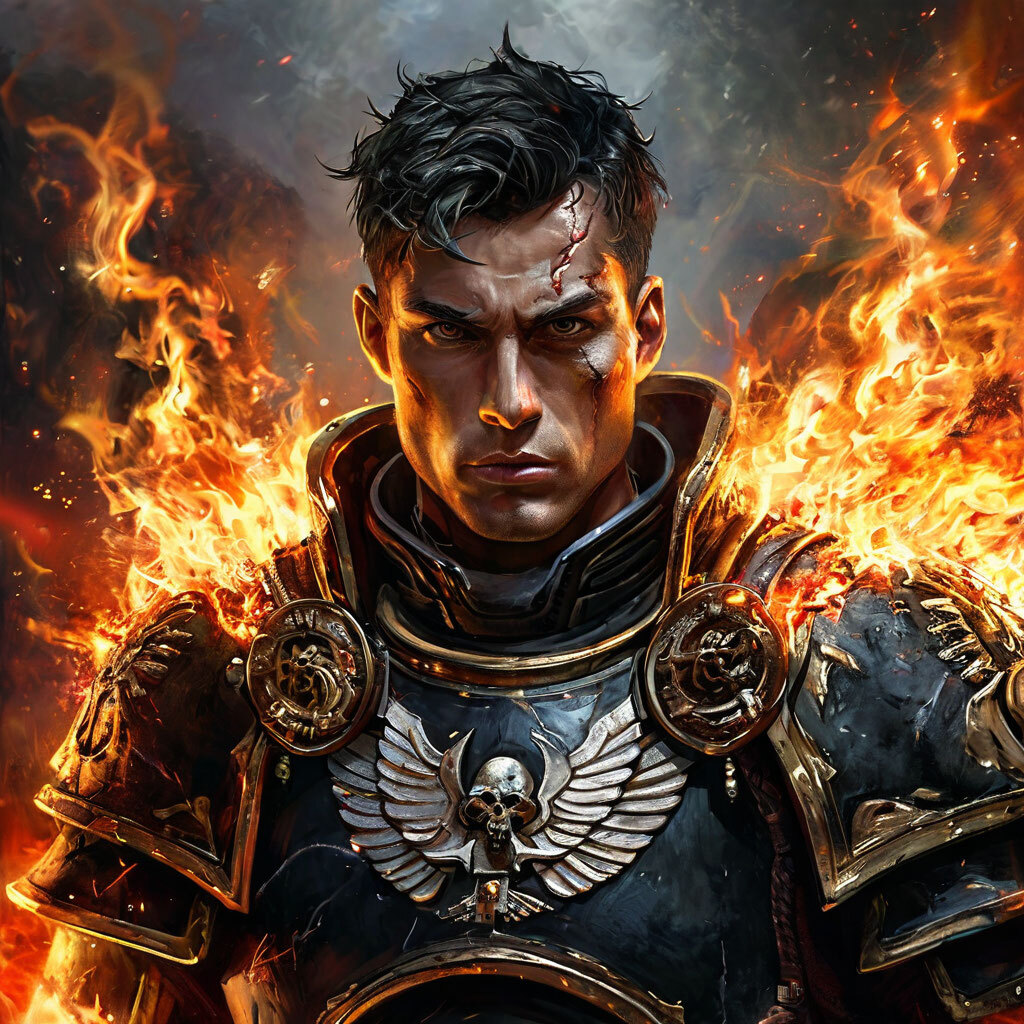 Вот огромный рогатый монстр с громогласным рёвом обрушивает на архонта испещрённый рунами топор, но промахивается. Мой соратник быстро отходит в сторону и чёрное лезвие, покрытое засохшей кровью, врубается в феррокрит. Сила удара была такова, что произошёл натуральный взрыв. А Сигурд призвав энергию варпа, воплотив в руке клинок из красных кристаллов и срубил удлинившемся лезвием голову Кровожада.