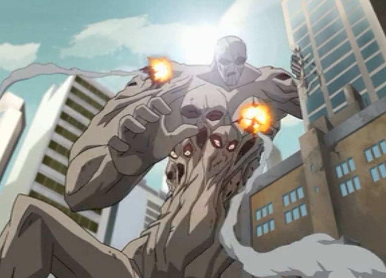 В ход шло уже практически всё, от мелкокалиберного оружия с бронебойными снарядами, специально разработанными для подавления или убийства ЭВО, до тяжёлых пулемётов, артиллерии, ракет и так далее. Однако монстр продемонстрировал удивительную прочность и стойкость — он явно чувствовал боль от ракет и артиллерии, но видимых повреждений он не получал, отчего, например, не было ясно, насколько хорошо он способен само исцеляться, ведь ещё ни одной раны он не получил.