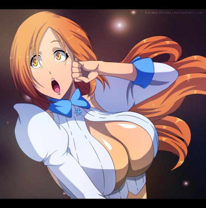 Средь бела дня Орихиме схватила руки Ичиго и прижала их к своей груди.