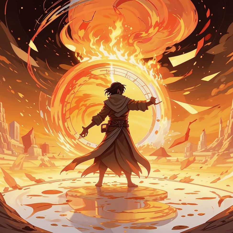 Разбежавшись со скалы — он полетел вниз, прямо к той подозрительной области, на ходу формируя заклинание, что сорвалось с его рук при приземлении — каменистая земля пошла трещинами, порода раскалилась, образовав вокруг него область непроходимой магмы, внутри которой он оказался один на один со своим заклятым врагом.