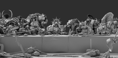 Главный зал, как и весь дворец был построен лично Рогалом, а потому даже не стоило упоминать идеальное качество этого места. Куда любопытней был тот факт, что тихий и адамантово спокойный Дорн создал настоящее произведение искусство из мрамора и золота — абсолютно каждая стена была украшена невероятным барельефом, что не выбивался из общей обстановки и даже не, однако при детальнейшем рассмотрении показывал величайшие достижения всего Империума и человечества за его историю.