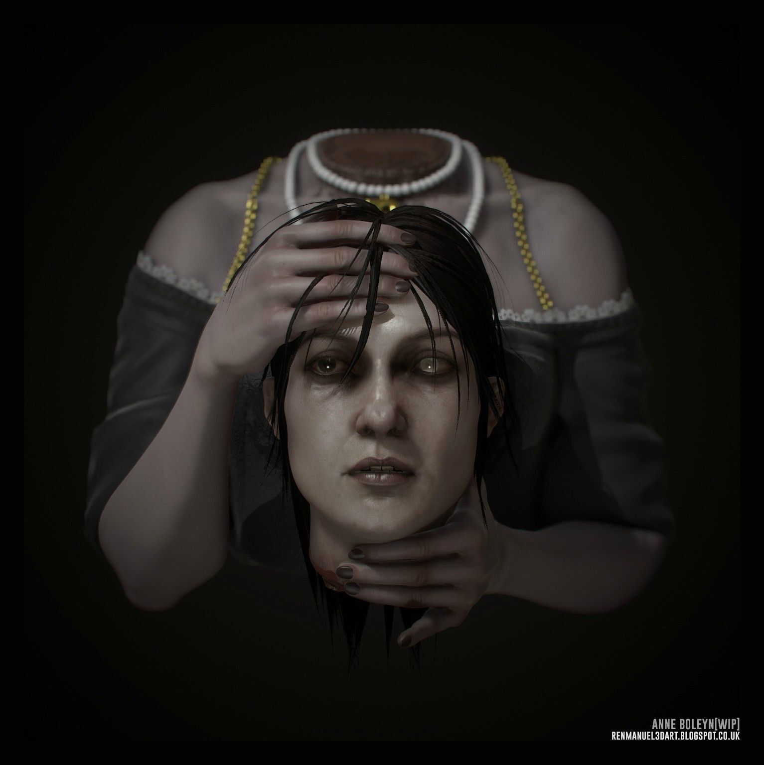 Возможно, мне не стоило оставаться здесь и рисковать, но я не связан с этим местом и в любой момент мог дать деру на улицу, это успокаивало меня. Темная энергия со всей башни медленно стягивалась к движущейся фигуре, женской, в красивом платье и… без головы. Точнее, женская фигура держала голову на вытянутых руках. И я это заметил, поднявшись наверх выглянув в коридор, где призрак шел, точнее левитировал над полом.