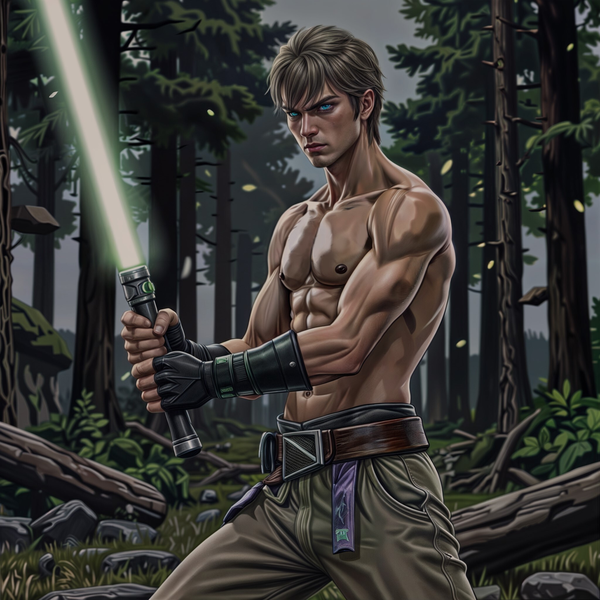 Постепенно «бой с тенью» набирал обороты. Тело Скайуокера двигалось на автомате (годы тренировок не прошли впустую). Новый меч, гудя от столкновения молекул тёплого воздуха Шили с плазмой лезвия выписывал красивые дуги, рисуя в пространстве довольно завораживающие картины.