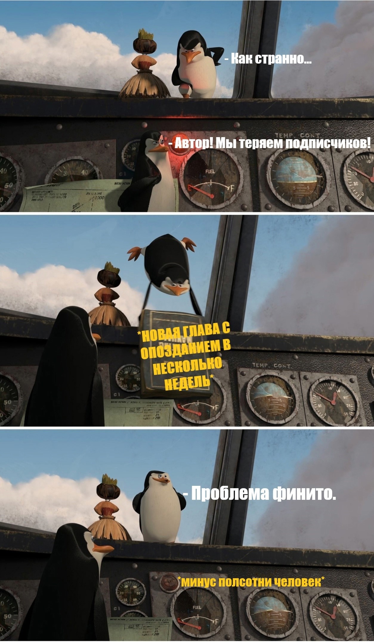 Относительно творческих планов — ЦАРЬ. Разумеется, разлюбезный наш Царь. Мы живы и полны энергии, все жизненные препятствия февраля преодолены, и в наших силах, при вашей поддержки, наверстать упущенное и добиться главы в неделю, как это было в предыдущих сезонах нашего сериала.