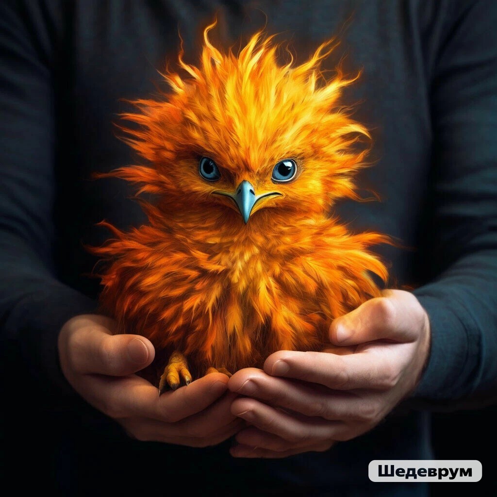 Огромные руки подхватили его, устроив на ладони, и поднесли его к лицу. В отражении очков он увидел не себя-человека, а покрытого редким алым пухом птенца.