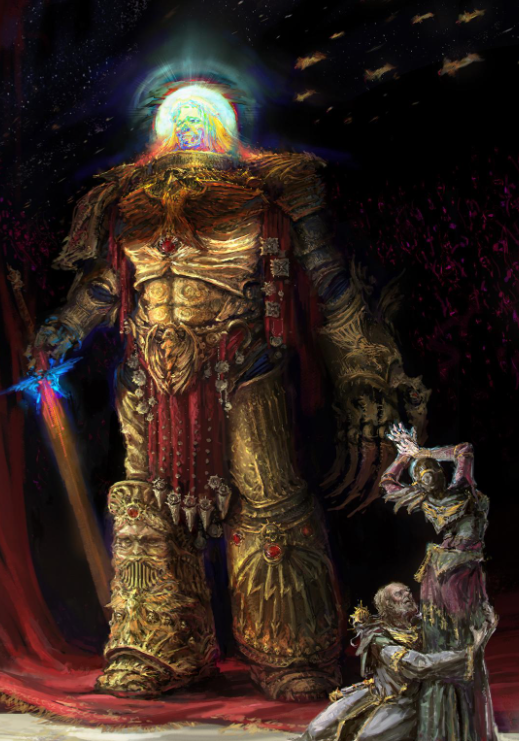 Идеальный во всех деталях, но при этом ставший каким-то гадким и походящим скорее на пародию на Императора человечества. Всё — от слишком кривой улыбки до глаз в которых не было и намёка на настоящие эмоции — всё стало похожим на фарс. Однако Ангел Империума почему-то всё равно не был в силах нанести последний удар и окончить его игру. Весь мир вокруг него будто бы противился этому, как и сама его сущность, по какой-то причине желавшая выслушать это существо.