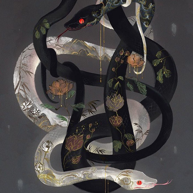 И вновь отпрыгнул Смокер, когда ощутил холодное касание к лодыжке: то белая змейка в спокойствии и грации скользила меж его ног, и сияло золото на её спинке. Никаких рывков, никаких бросков. Спокойные изгибы тельца, окончившиеся у самых ботинок Ордорэ, и осуждение в красных глазках заставило ту нагнуться, хихикнув. Змея забралась по протянутой руке, заняв своё место на плечах Хины, переплетаясь хвостами с чёрной товаркой.