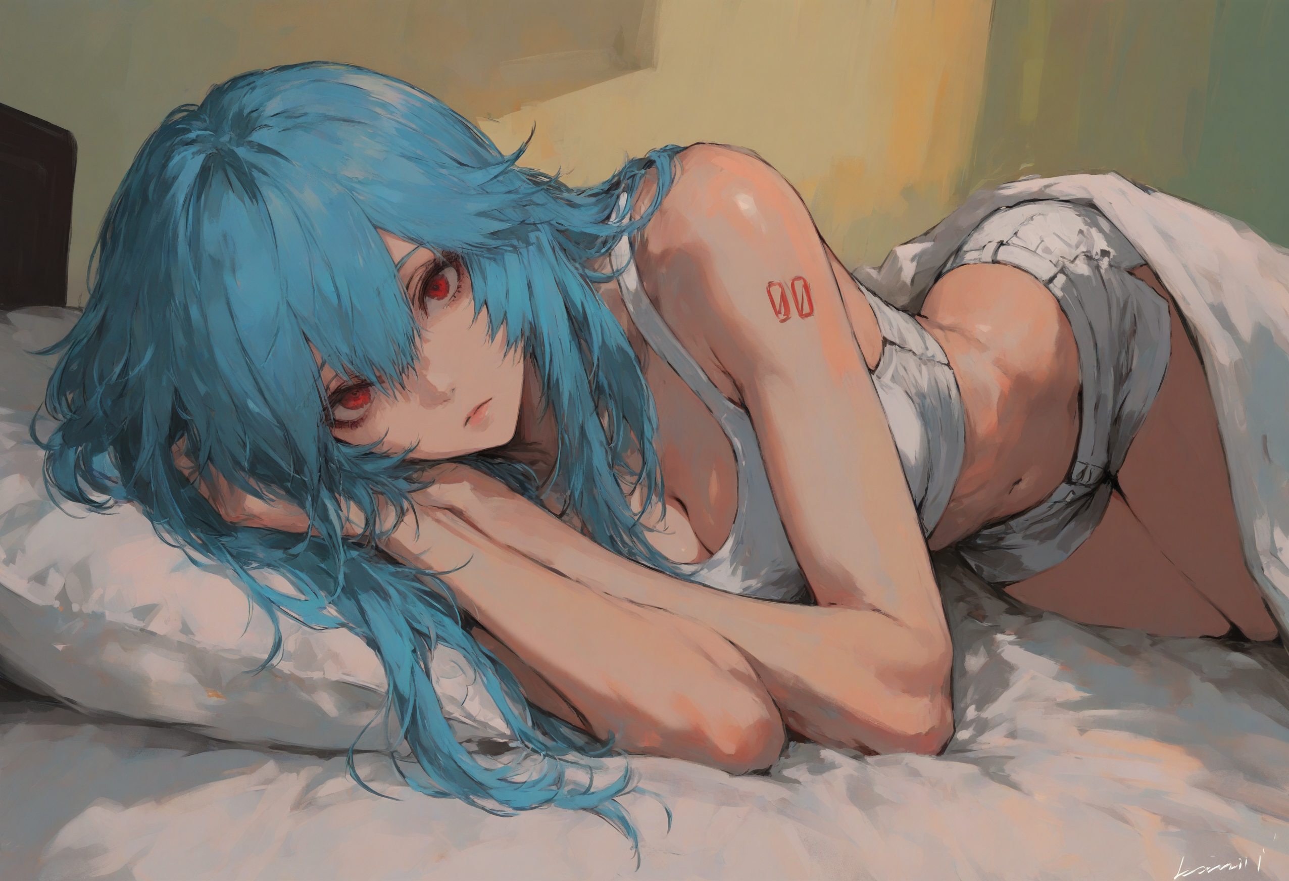 Аянами, отодвинув стул, улеглась на кровать, подложив руки под голову.