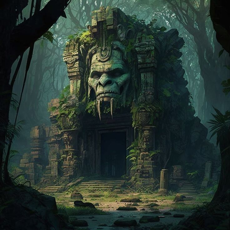 Высокий дом с вратами, над которыми была каменная структура напоминающая лицо обезьяны.