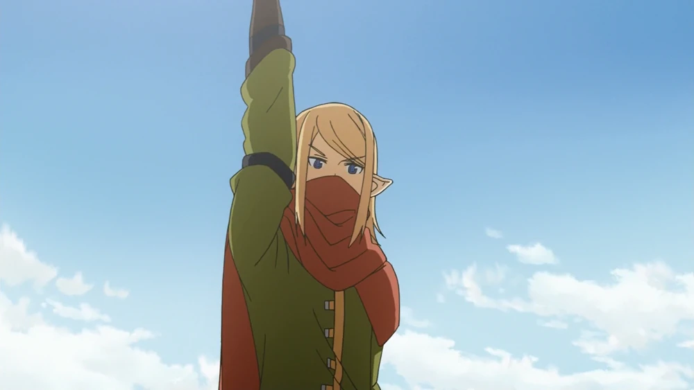 Им был эльф, нижняя часть лица которого была обмотана красным шарфом, а одет он был в зелёный костюм.