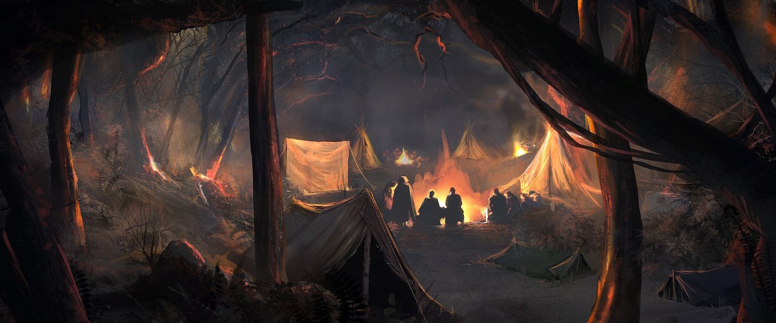 Во время поиска очередного логова они наткнулись на лагерь бандитов. Те довольно вольготно чувствовали себя в лесной чаще и как выразился один из них «пощипывали проезжавших по тракту купцов». В одном месте они на долго не задерживались этот лагерь тоже был временным, из него они делали вылазки и сюда же притаскивали «трофеи».