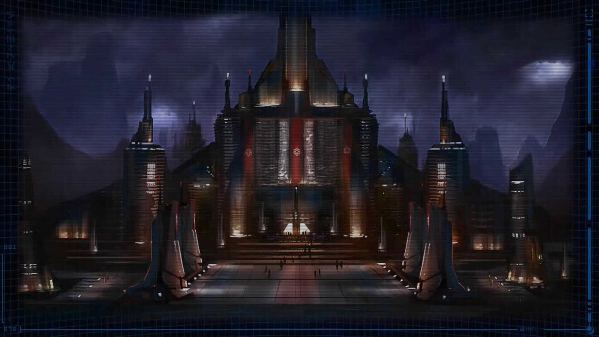 Загрузившись в достаточно большой Флаер мы в составе целой делегации направились к Храму. Хотя сама церемония еще не началась, но по всей протяженности пути от дворца, в котором проживал Ситх, до бывшей твердыни джедаев были кучи народу, которые приветствовали нового повелителя. Над планетой, на довольно большой высоте, в шахматном порядке весели разрушители. Картеж сопровождали несколько троек сид–истребителей, уравнявшие скорость с бронированными машинами, выкрашенными в черный цвет с белыми эмблемами Империи на бортах.