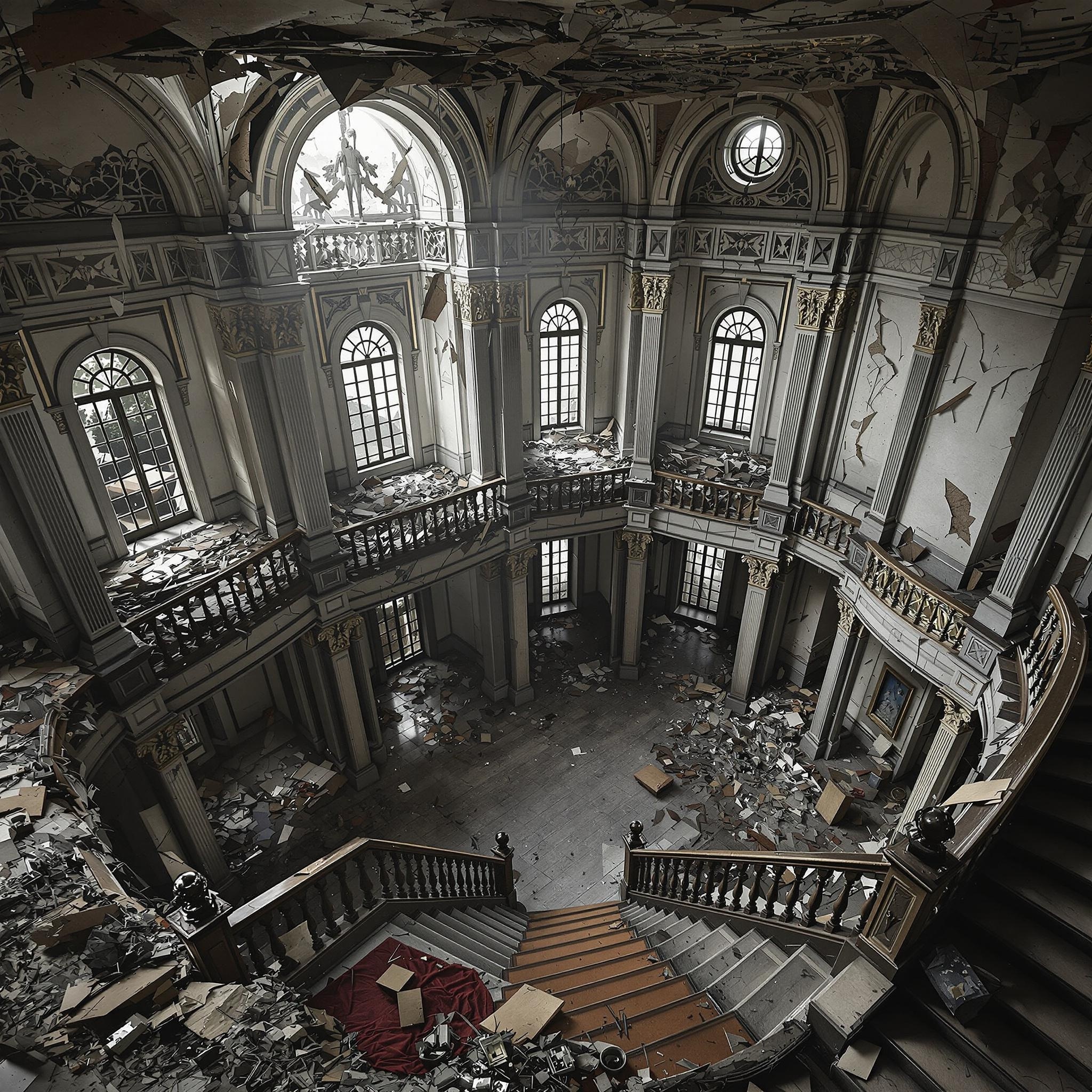 Разнообразные фигуры, некоторые ещё не пришедшие в себя, а некоторые откровенно наслаждающиеся праздником дальше, валялись на диванах, полу, столах и даже, казалось, на люстре (хотя это могло быть оптическим обманом). Кто-то обнимался, кто-то танцевал под музыку, которая всё ещё играла с инструментронов, а один из солдат всё ещё держал в руках пустую бутылку, будто это был его боевой трофей.