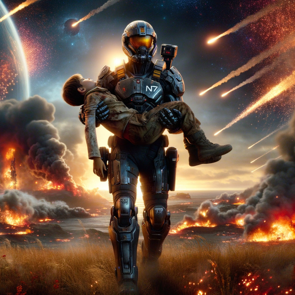 — Кто я — неважно, — наконец ответил Шепард, убирая флягу. — Вопрос в том, как ты сюда попал. Здесь идёт война, это не место для детей. Тем более в таком состоянии.