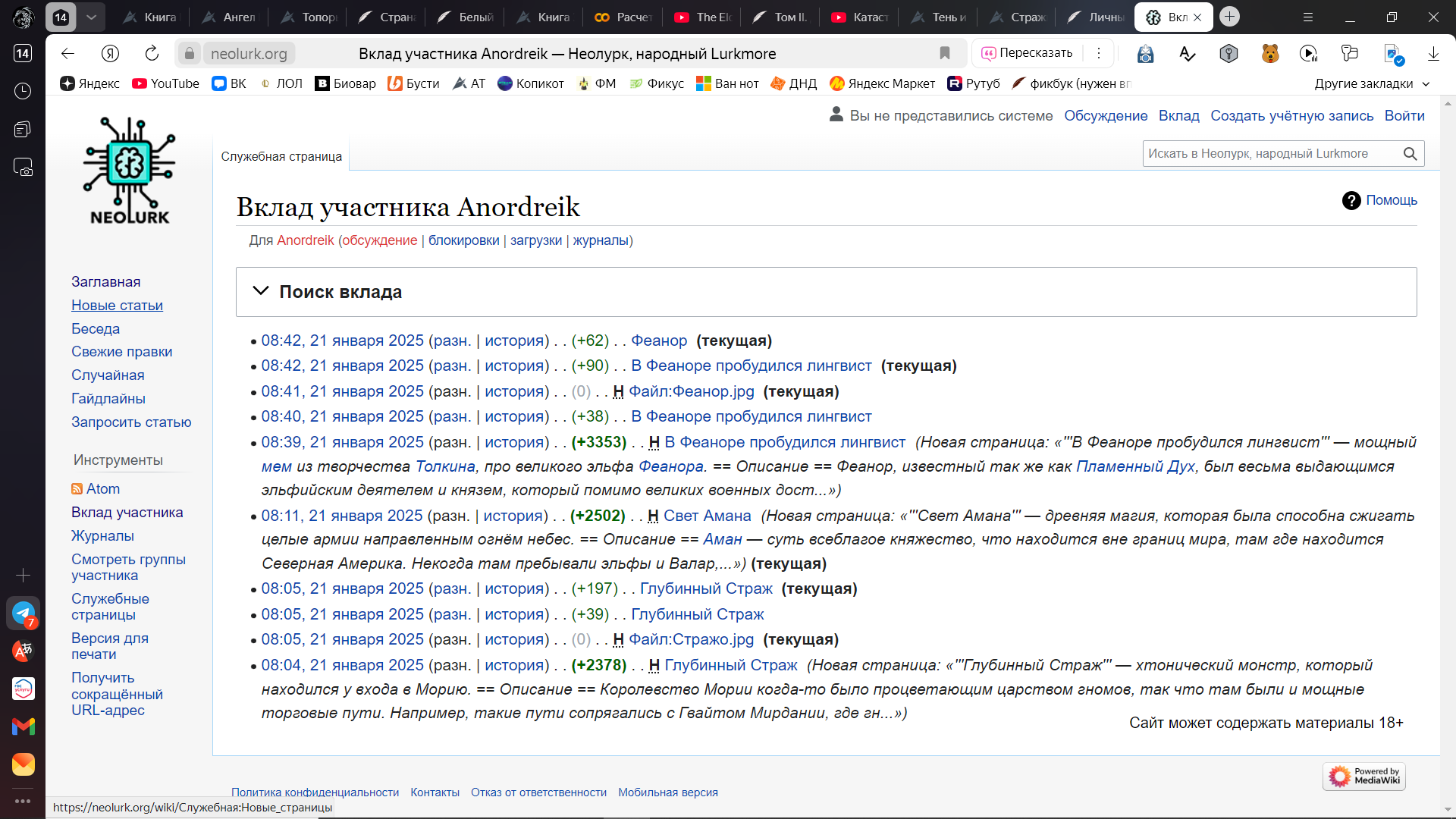 После чего — принялся вносить кучу правок в разнообразные статьи на все том же Неолурке от моего имени.