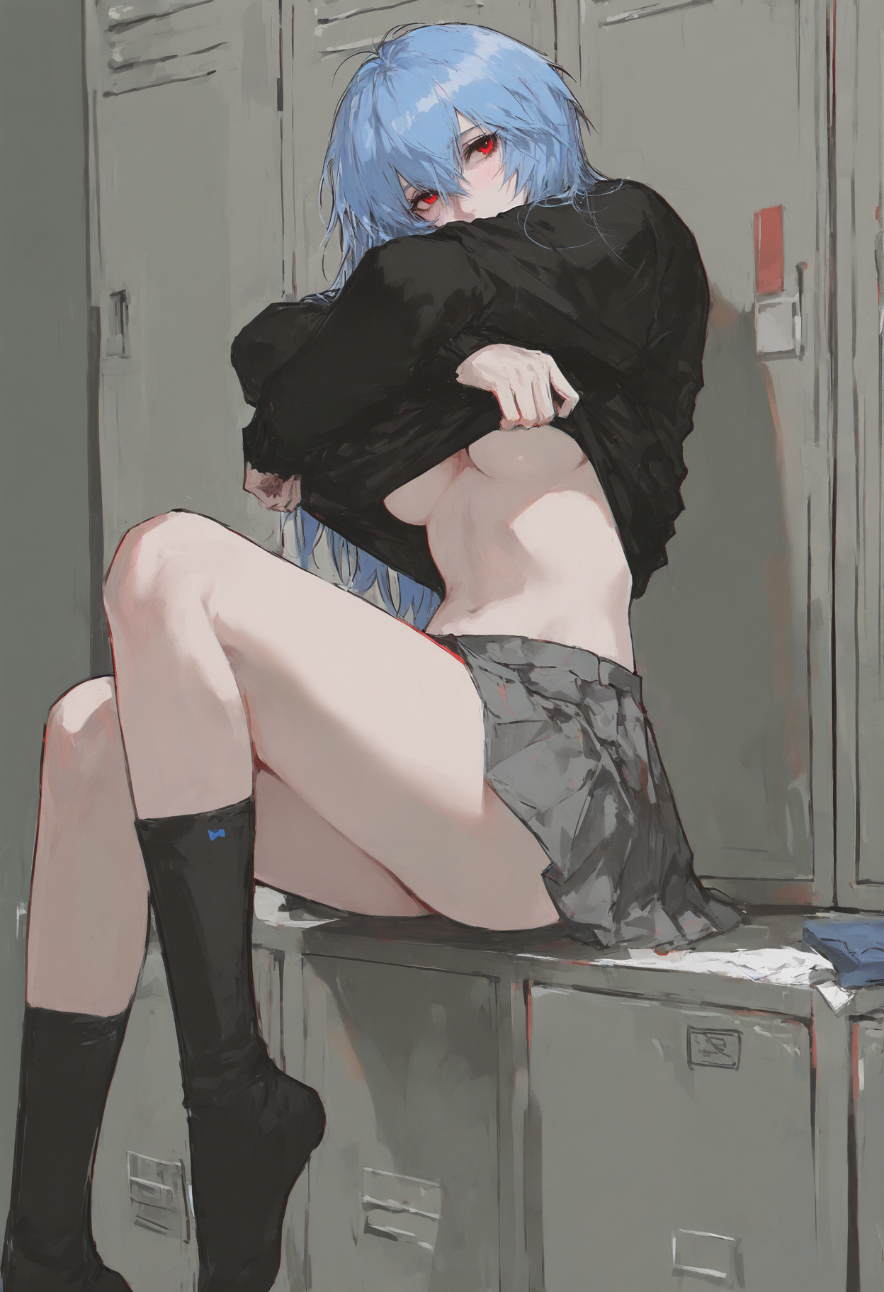 Рей расстегнула юбку и позволила ей упасть на пол. Переступив через ткань, девушка, оставшись в одних трусиках и носках, повернулась ко мне и вскинула бровь: