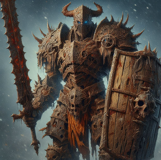 Высоченный, выше даже тех, кто страдал гигантизмом. Его покрытые коррозией доспехи испещрили трещины, но броня надежно покрывала всё тело, что наводило мысли на танк. В одной руке он держал здоровенный меч, покрытый запекшейся кровью, а в другой осадной щит, который двоим не поднять. Глаза драуга горели синим пламенем, ярче, чем у любой иной нежити. А походка… Что ж, на стелс-миссии бугая лучше не брать. Каждый его шаг отдавал молотом по наковальне.