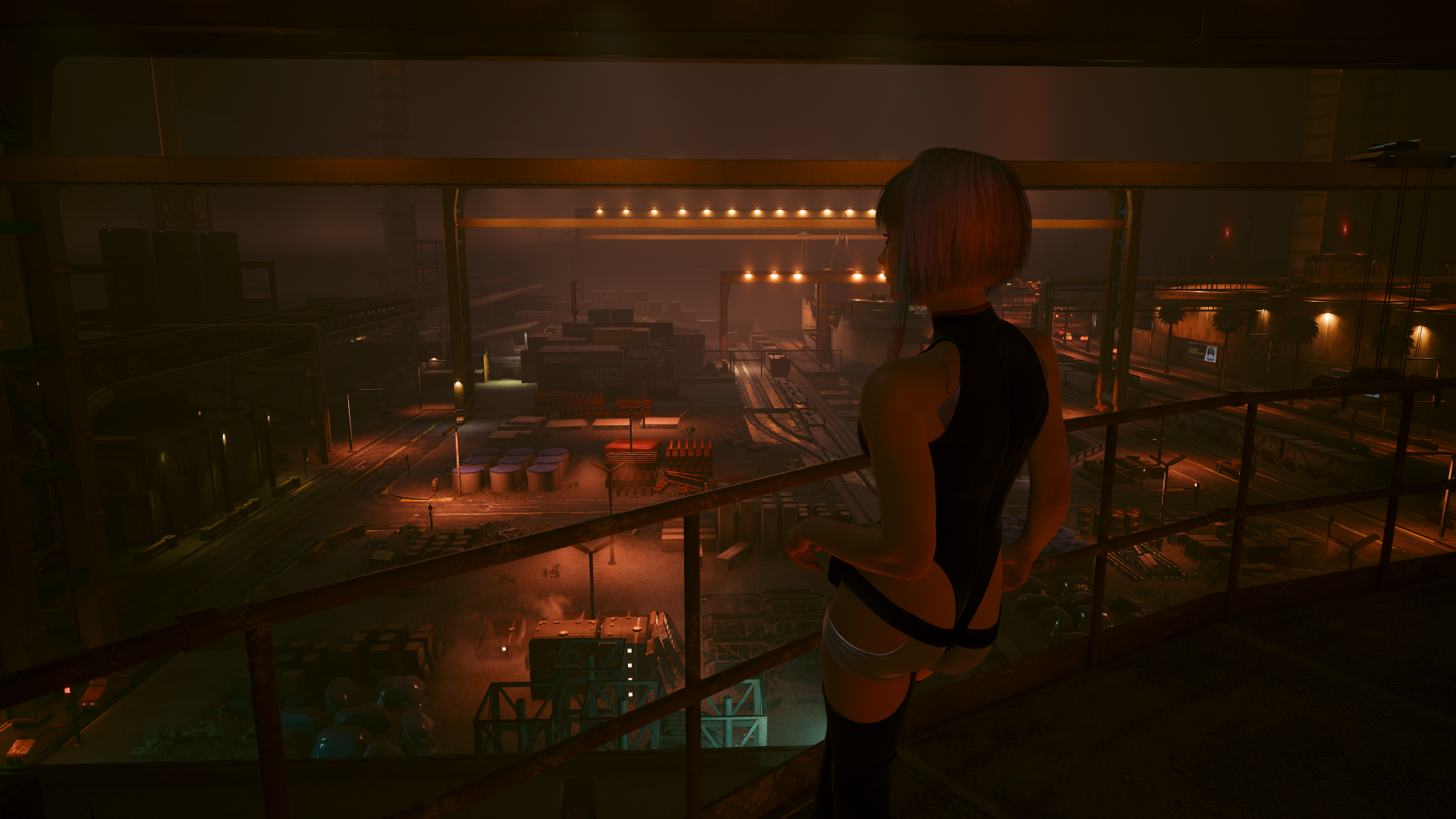 Подъём по винтовой лестнице был недолгим. Наверху обнаружилась небольшая закольцованная дорожка с металлическими перилами. В воздухе висел густой запах мазута. Казалось, закуришь и сам вспыхнешь как спичка. Люси с меланхоличным видом созерцала “красоты” промышленного квартала.