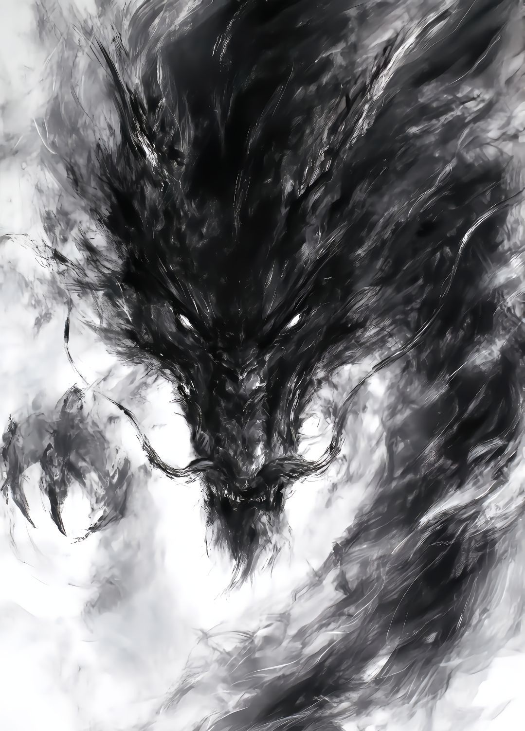 В белом мареве, что плыло волнами перед глазами, зародилась одна точка. Она стала темнеть, набирая чёрный цвет, и разрастаться в размерах. Вот точка стала растекаться, словно кто-то начал рисовать акварелью по влажной бумаге. Точка начала стремительно видоизменяться. Вначале превратилась в угольно-чёрное пятно, затем в кляксу с разводами всех оттенков чёрного и серого, а потом и вовсе закрутилась и закружилась в нечто непонятное. Мгновение, и перед ним стал материализовываться самый настоящий восточный дракон из дыма.