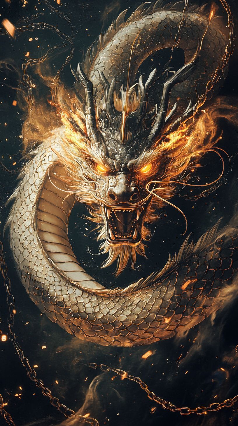 Он имел типичную для азиатских драконов внешность, с удлинённым телом и мордой, четырьмя лапами и длинным хвостом. На морде ярко выделяли провалы глаз. Они невольно были белёсыми и приковывали к себе внимание. Длинные усики над пастью плавно покачивались в такт каждому медленному движению огромной головы. На кончике хвоста была кисточка, словно сотканная из дыма, а острые и длинные когти и зубы внушали уважение и страх любому, кто мог их лицезреть.