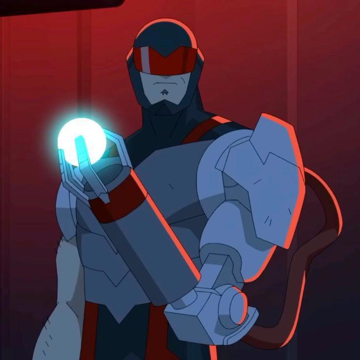 Преступником был высоким мужчиной в тёмно-красной броне и с алым визором на глазах, что скрывал большую часть его лица. Однако его всё равно выделяло именно какое-то орудие, заменявшее правую руку и выпускавшего какую-то версию алого лазера, пробивавшего стены зданий и машины без каких-либо проблем. Обычная полиция даже не рисковала подходить к этому вооружённому противнику, от брони которого отскакивали даже крупнокалиберные пули, вот только, к их счастью, у него имелся достойный противник, отвлекавший от них внимание.